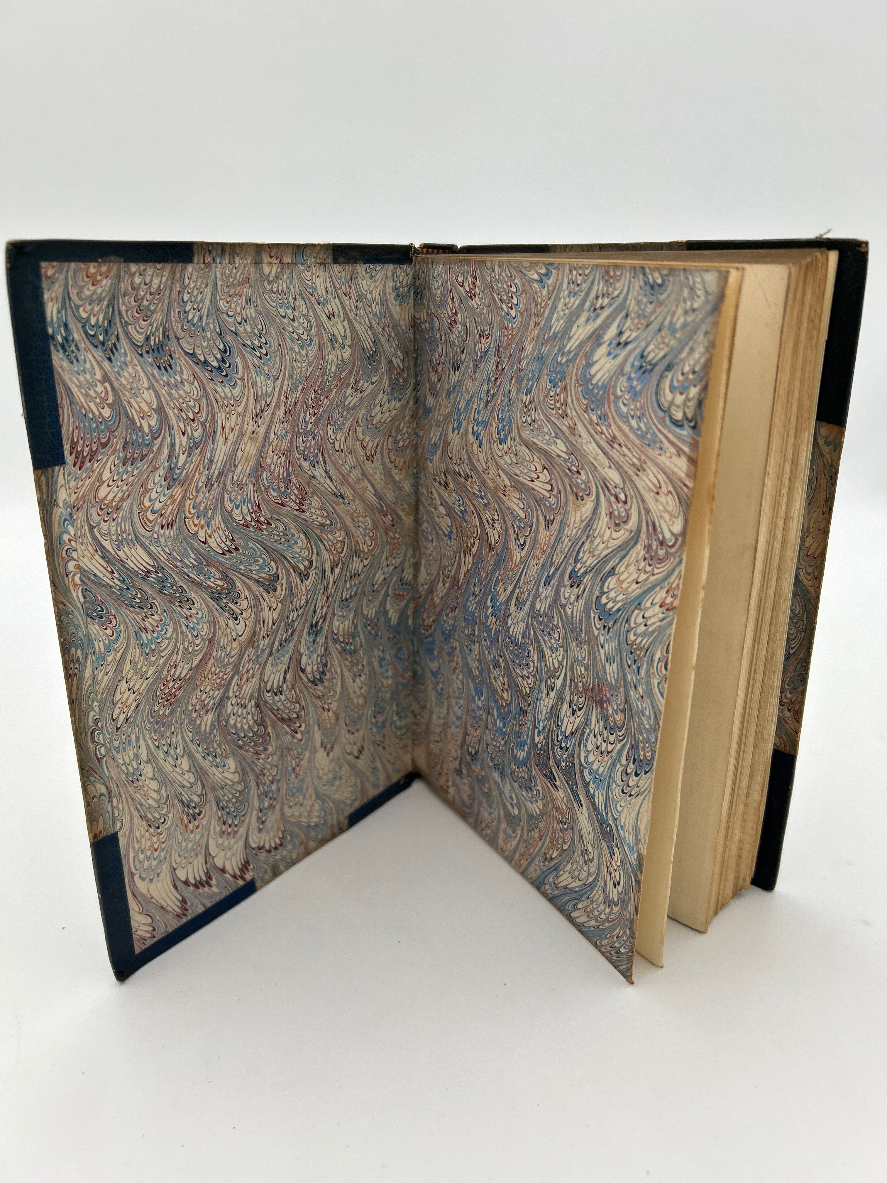 Marbled boards with three quarter Blue leather. Five raised bands with gilt details and lettering on the spine. Foxing to the interior pages and especially the title page. Fine condition overall.