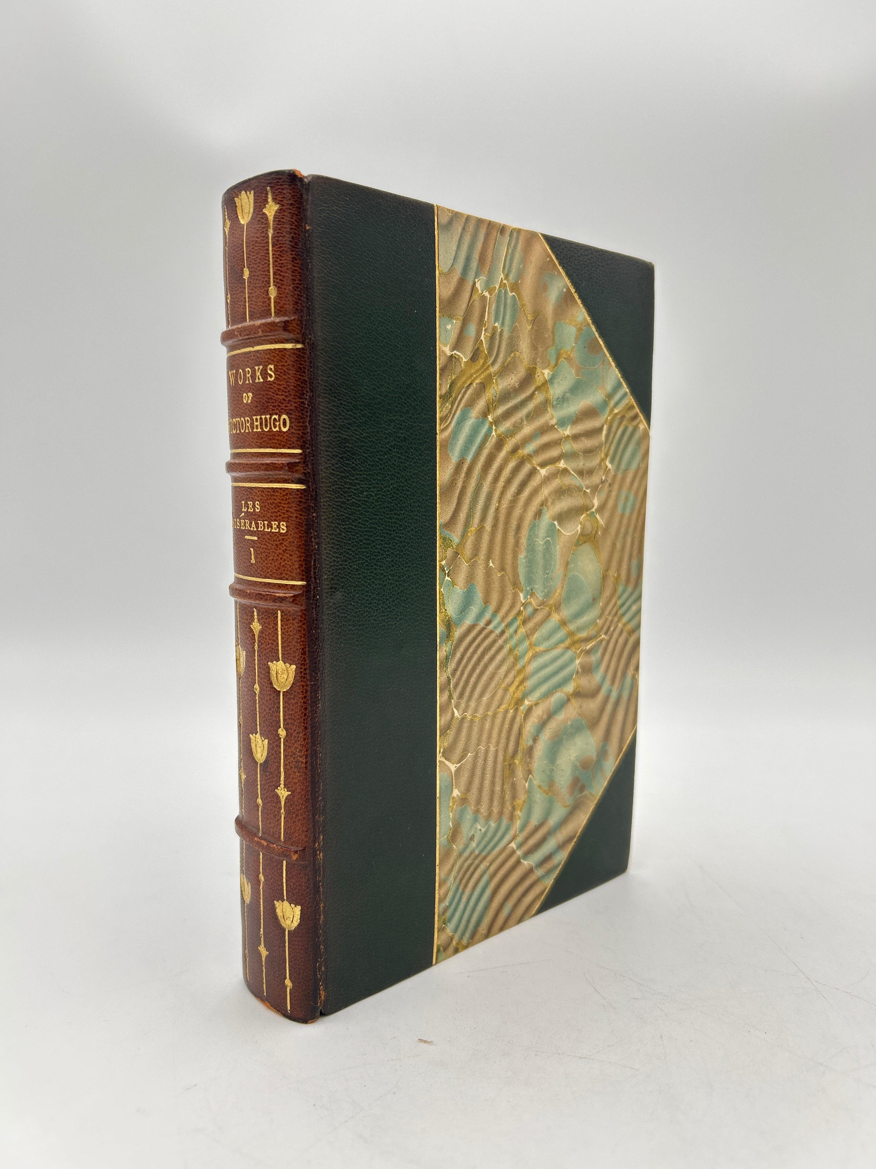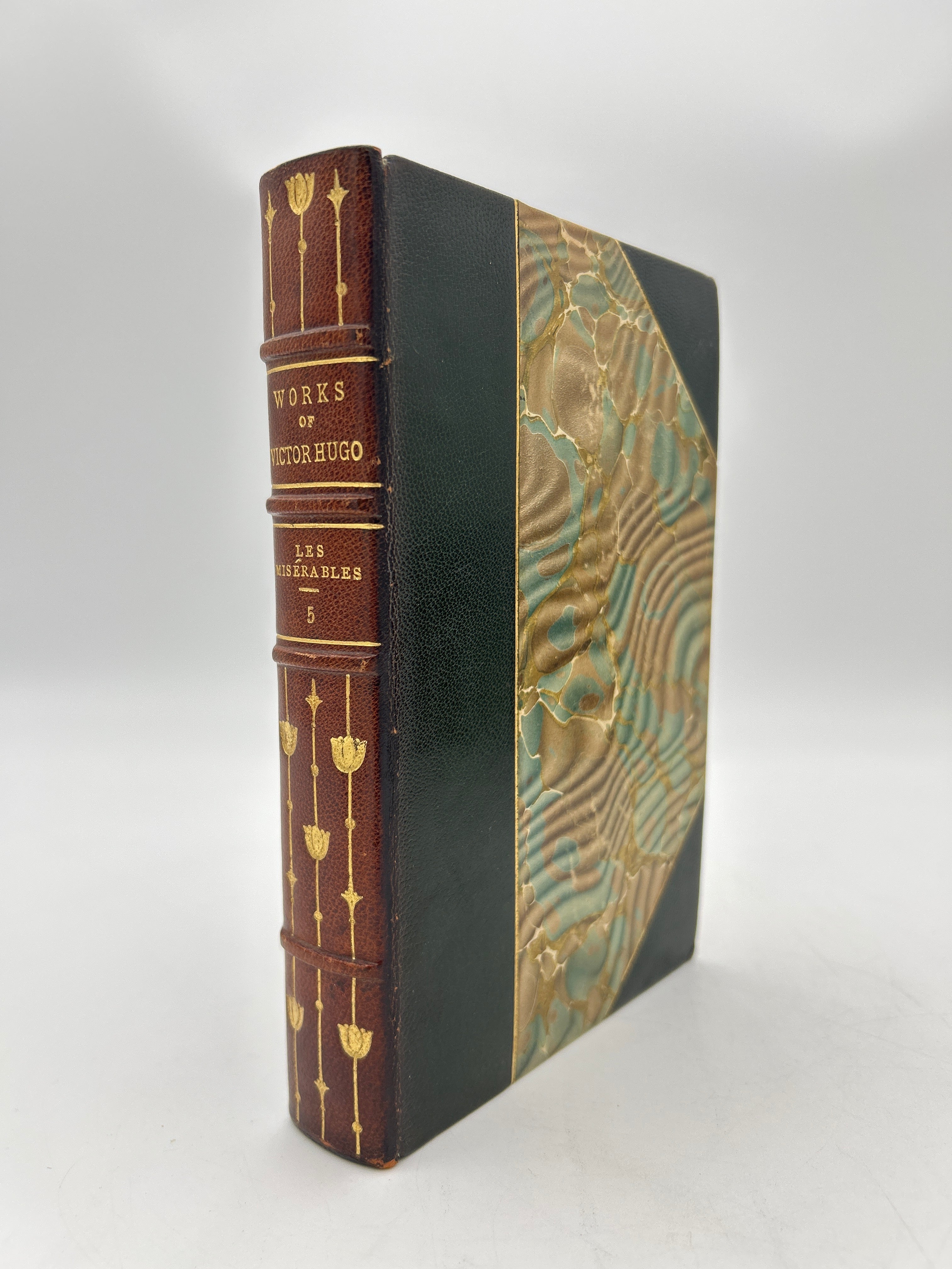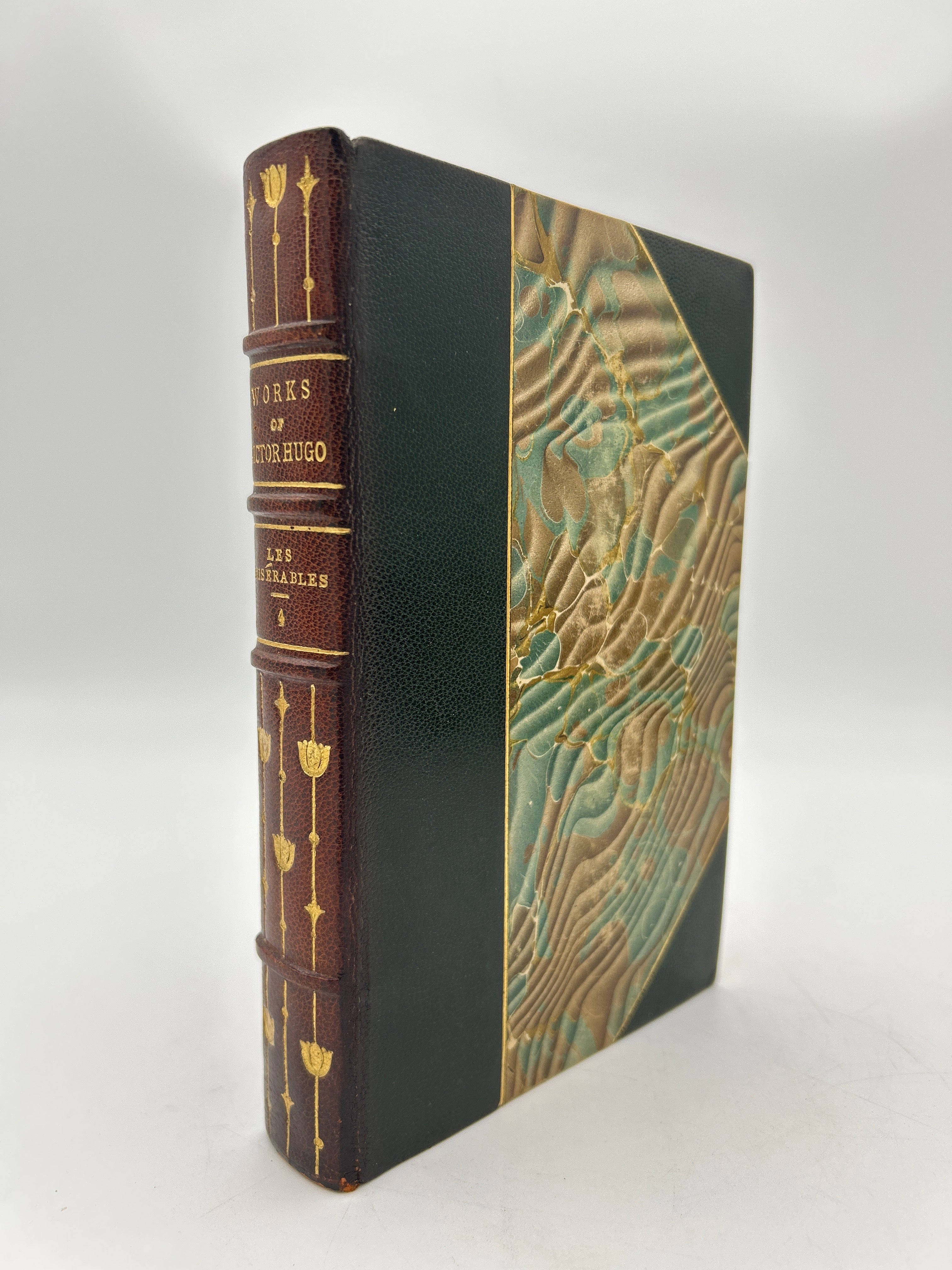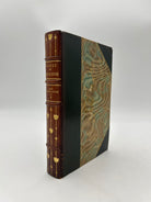 3/4 leather with marbled front, binding in brown leather with gold lettering and embossing, gold edges on top, slight on bottom edge of spine, sun faded spine to a beautiful brown.very fine condition