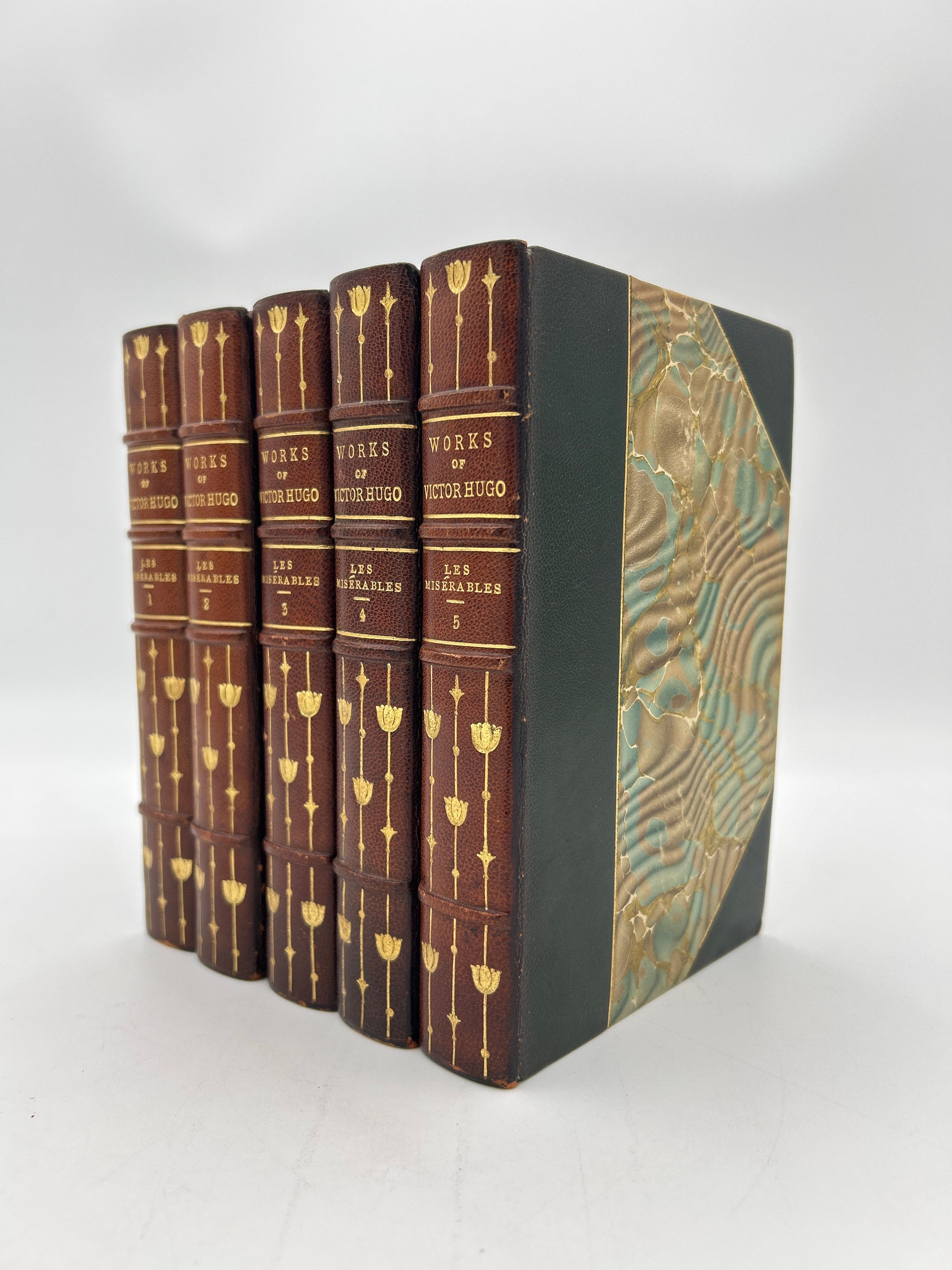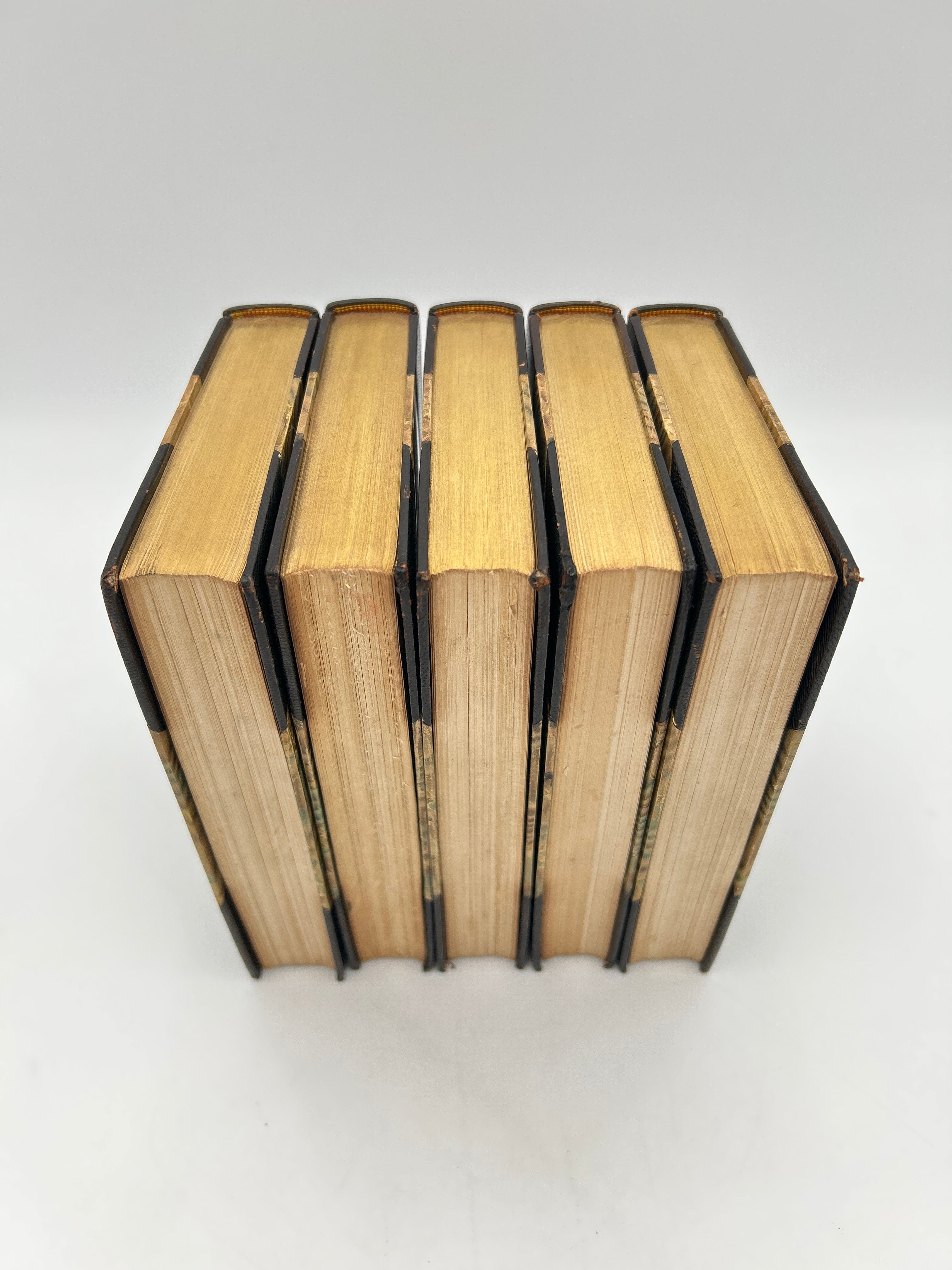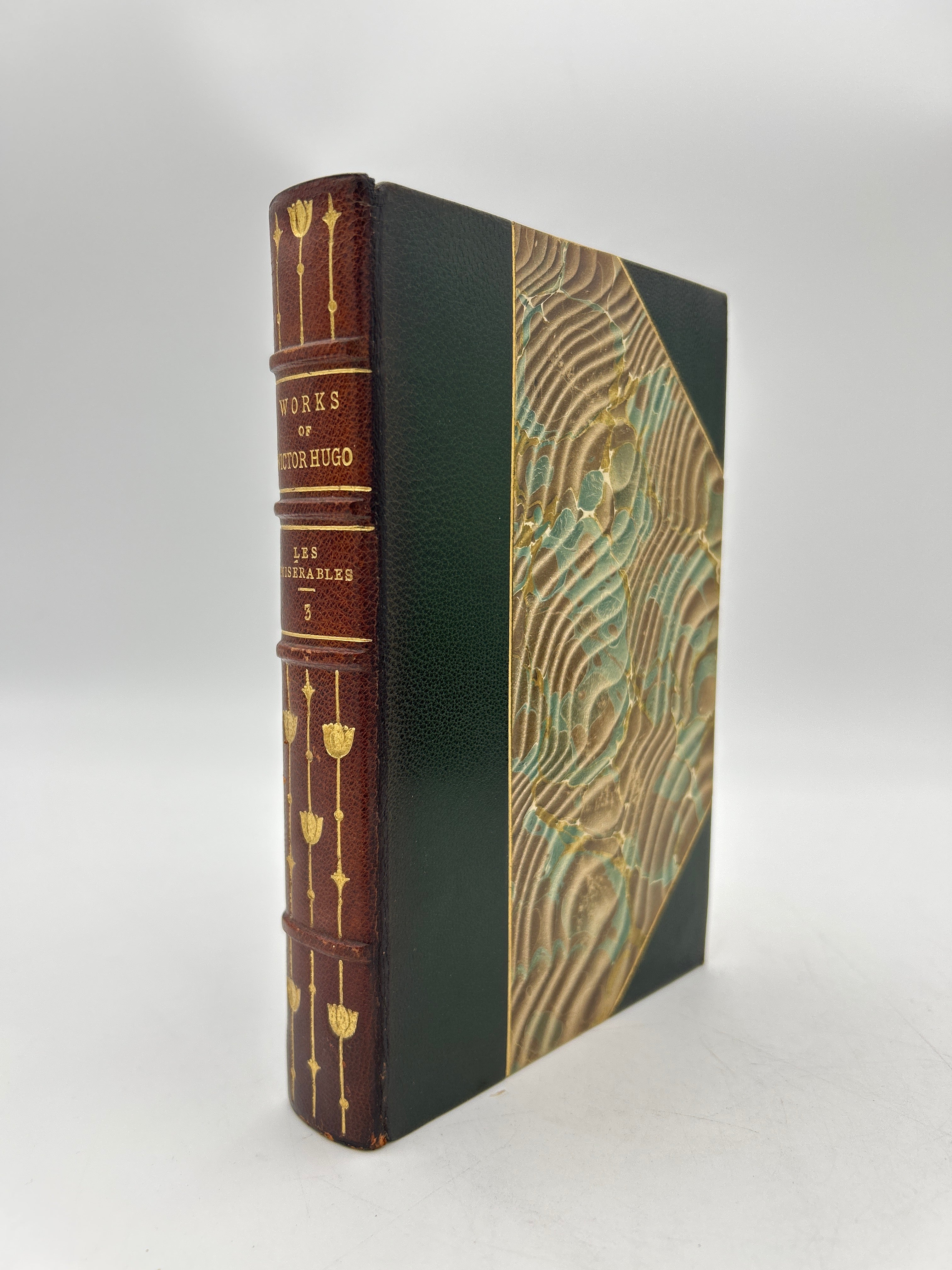 3/4 leather with marbled front, binding in brown leather with gold lettering and embossing, gold edges on top, slight on bottom edge of spine, sun faded spine to a beautiful brown.very fine condition