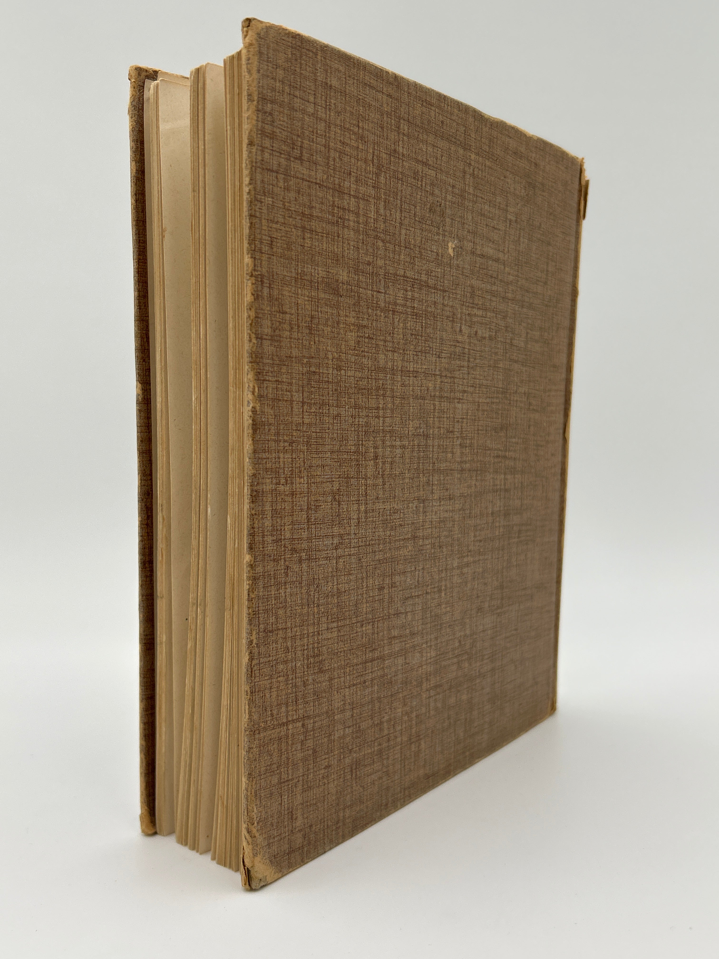 Brown vellum binding with black illustration on front, black lettering front and spine, small tear on upper spine. Minor separation from the spine. Black and white illustrations throughout. Overall good condition.