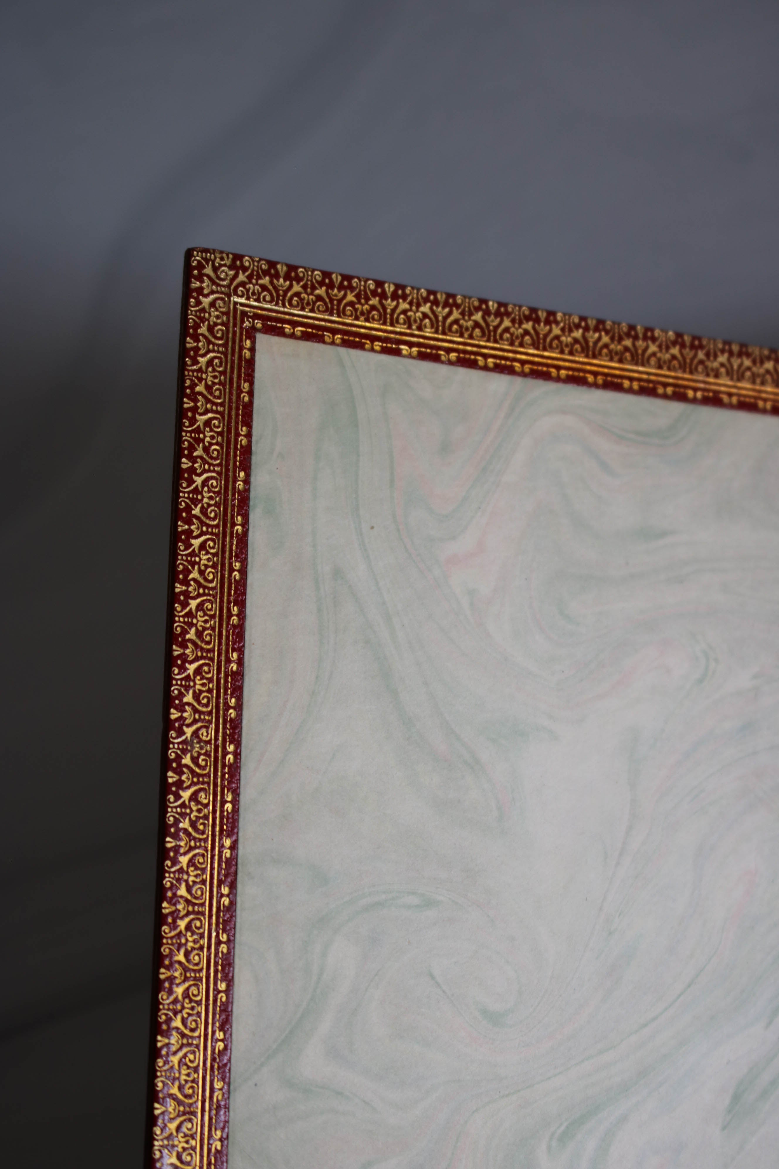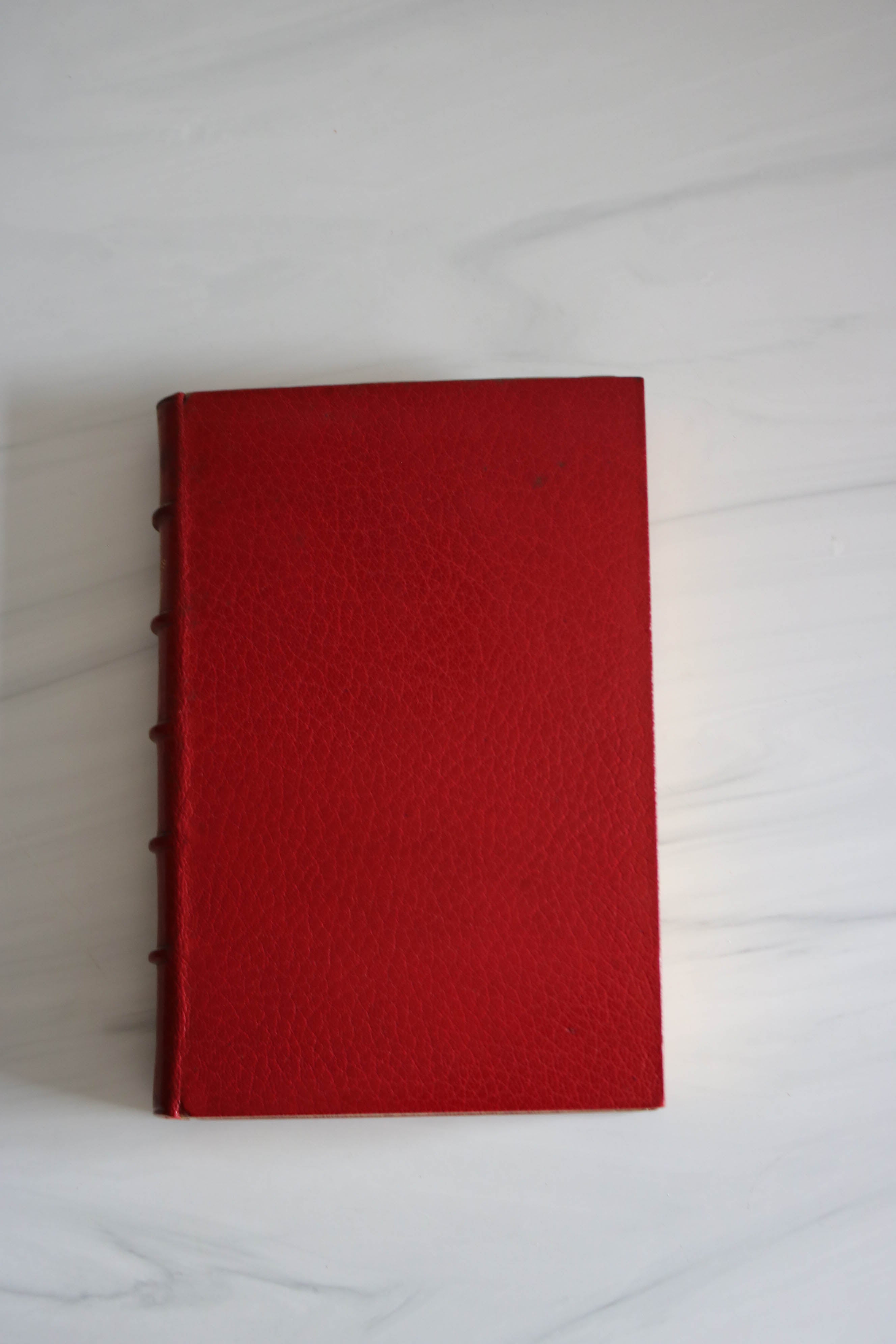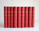 Red textured leather, gold lettering on binding, 9 volumes, five raised bands on spine, three gilt edges, very fine condition.