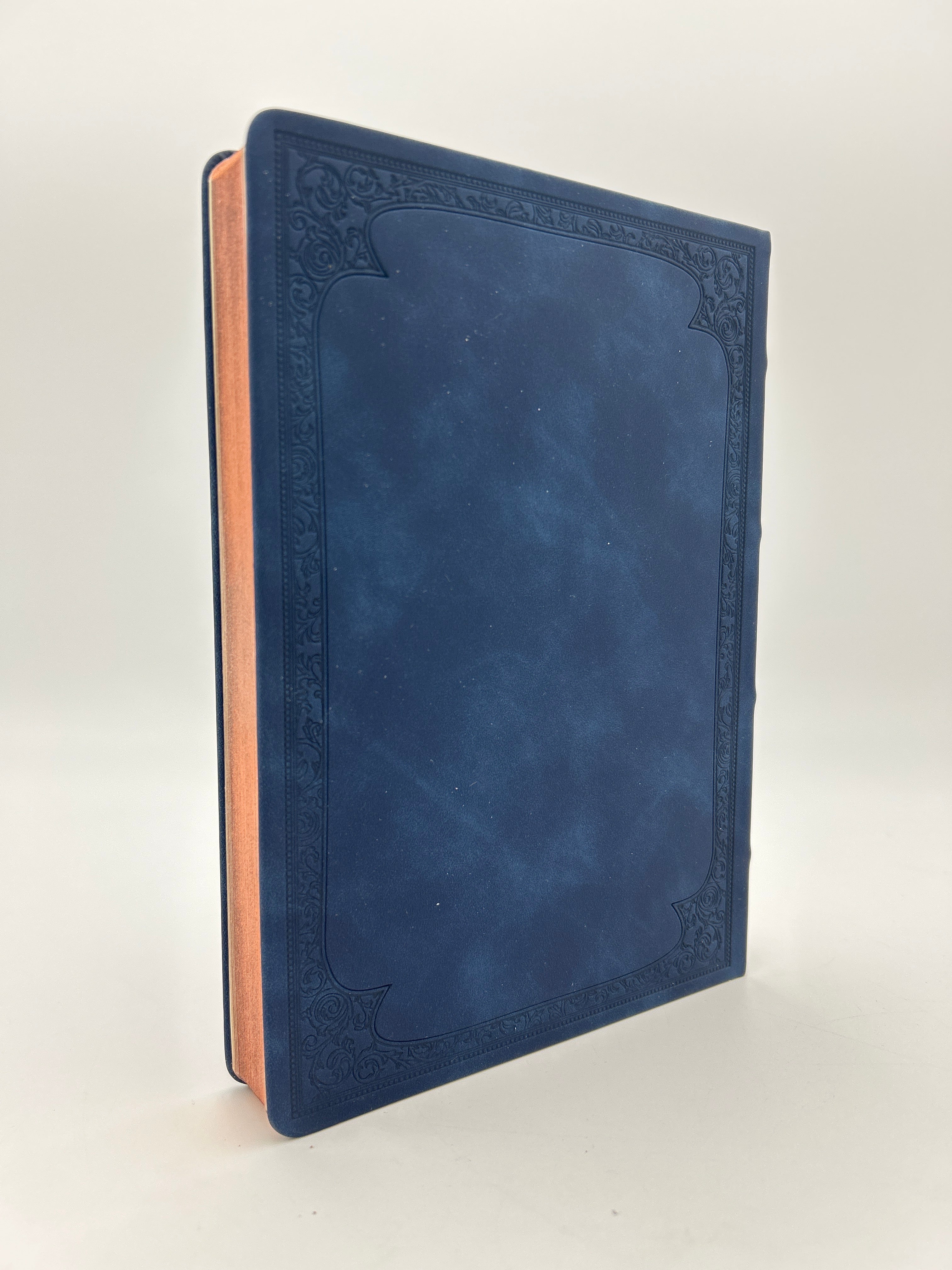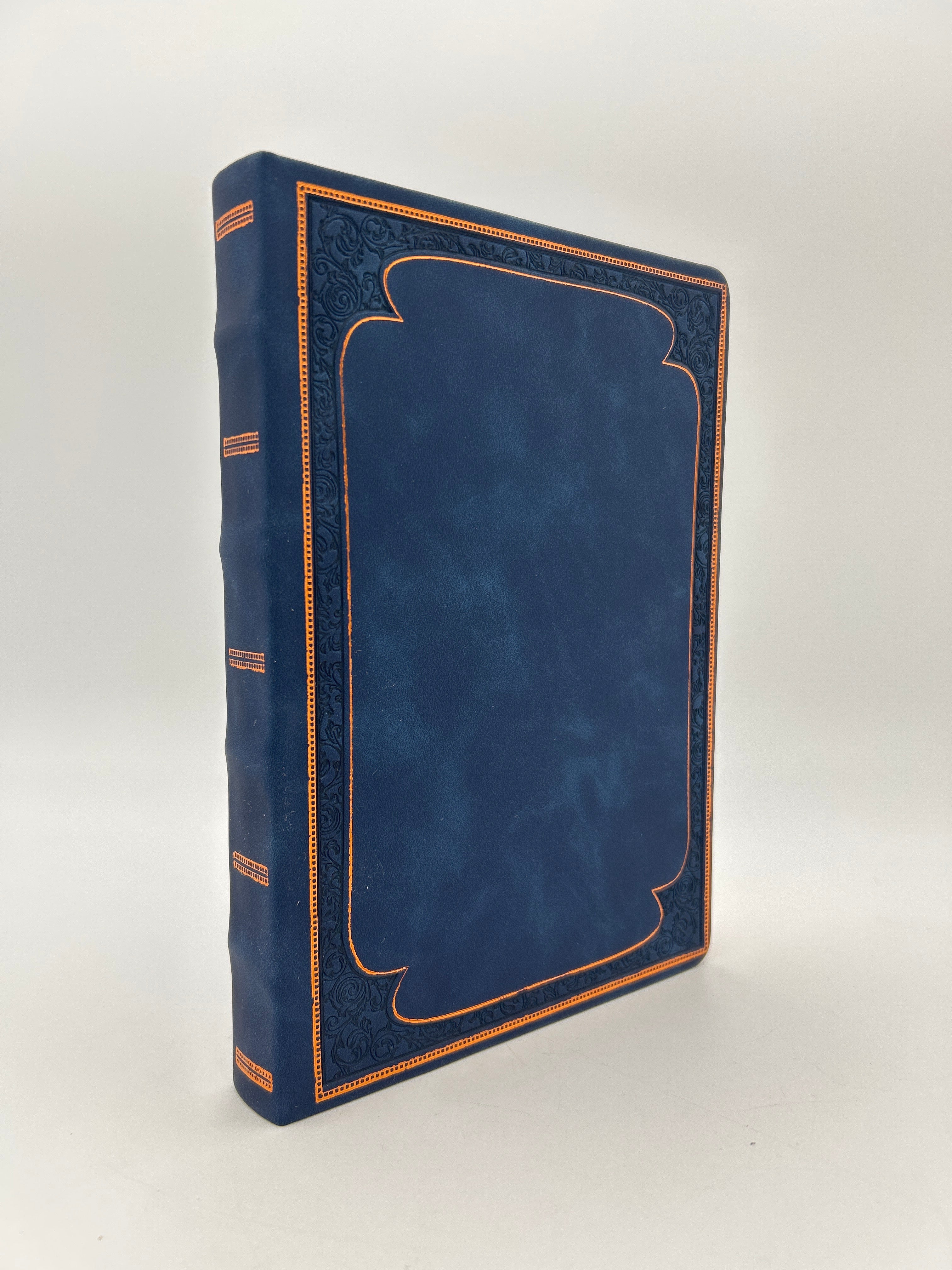 Embossed on front and back covers and spine. gold border on front and gold bands on spine