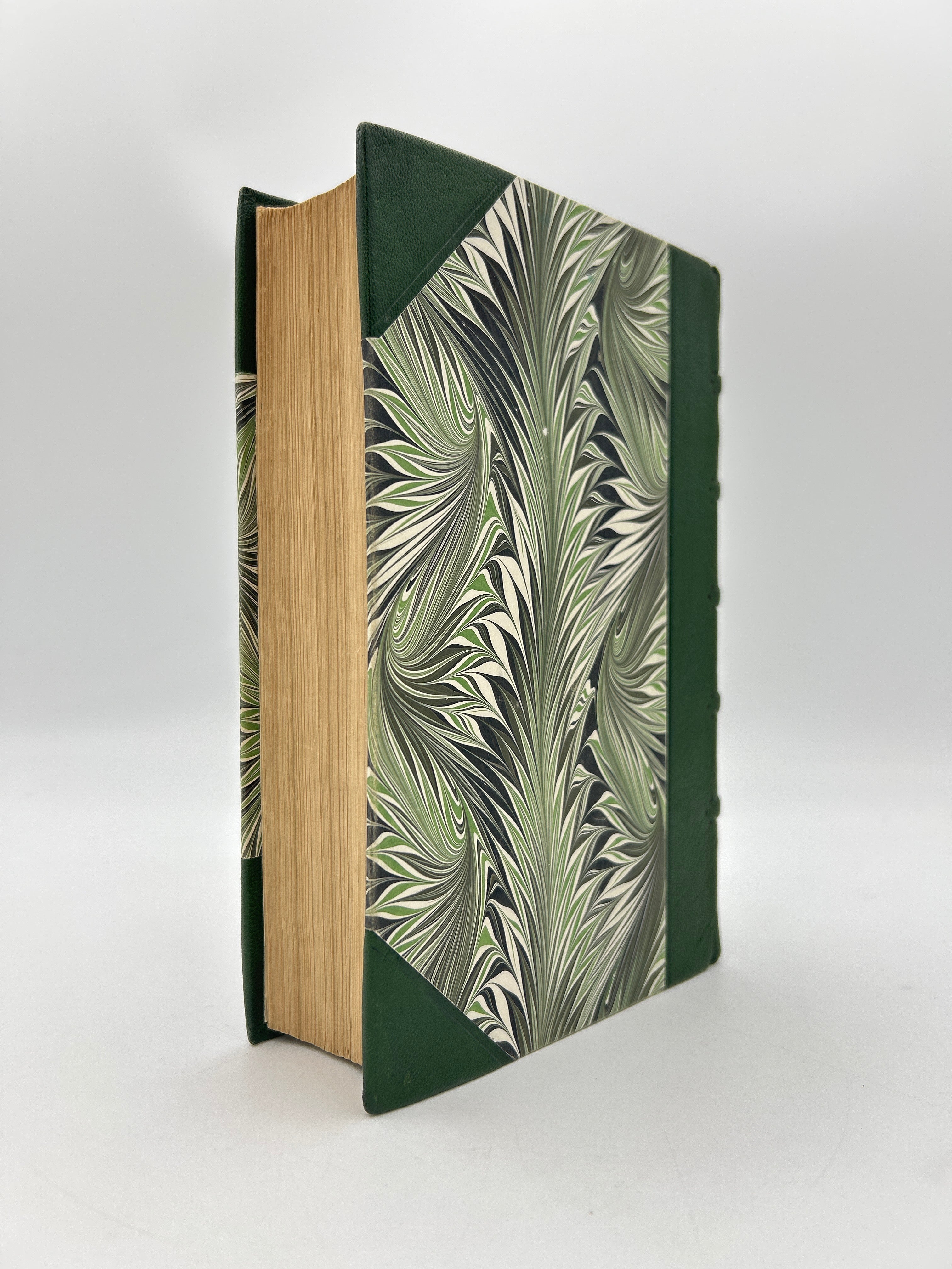 Green  3/4 leather cover with marbling, dark label and gold lettering, original gift box. Pristine condition.