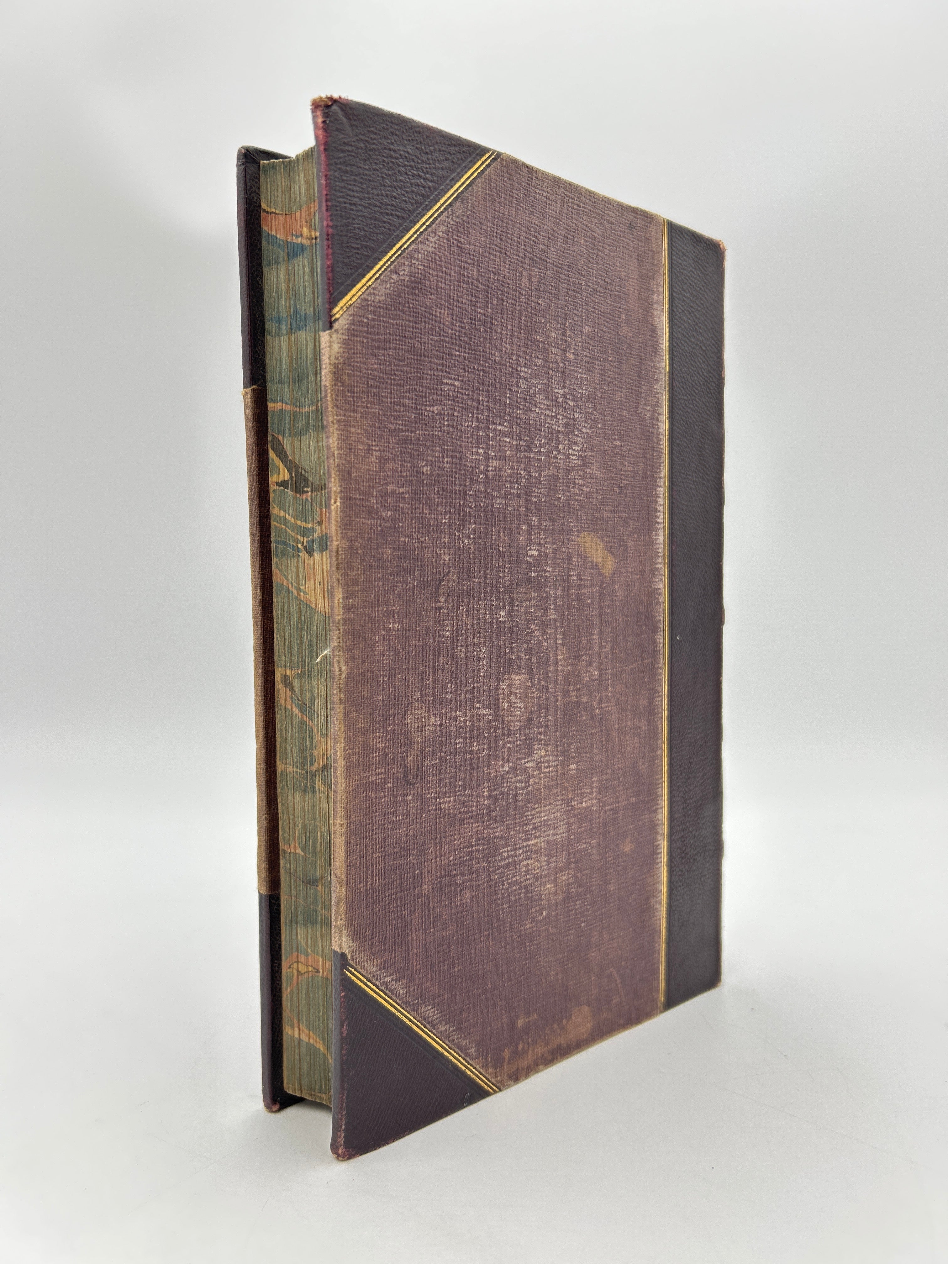 3/4 burgundy leather with cloth front and back, burgundy binding with gold tooling on spine, five raised bands, 24 Illustrations, fine condition.