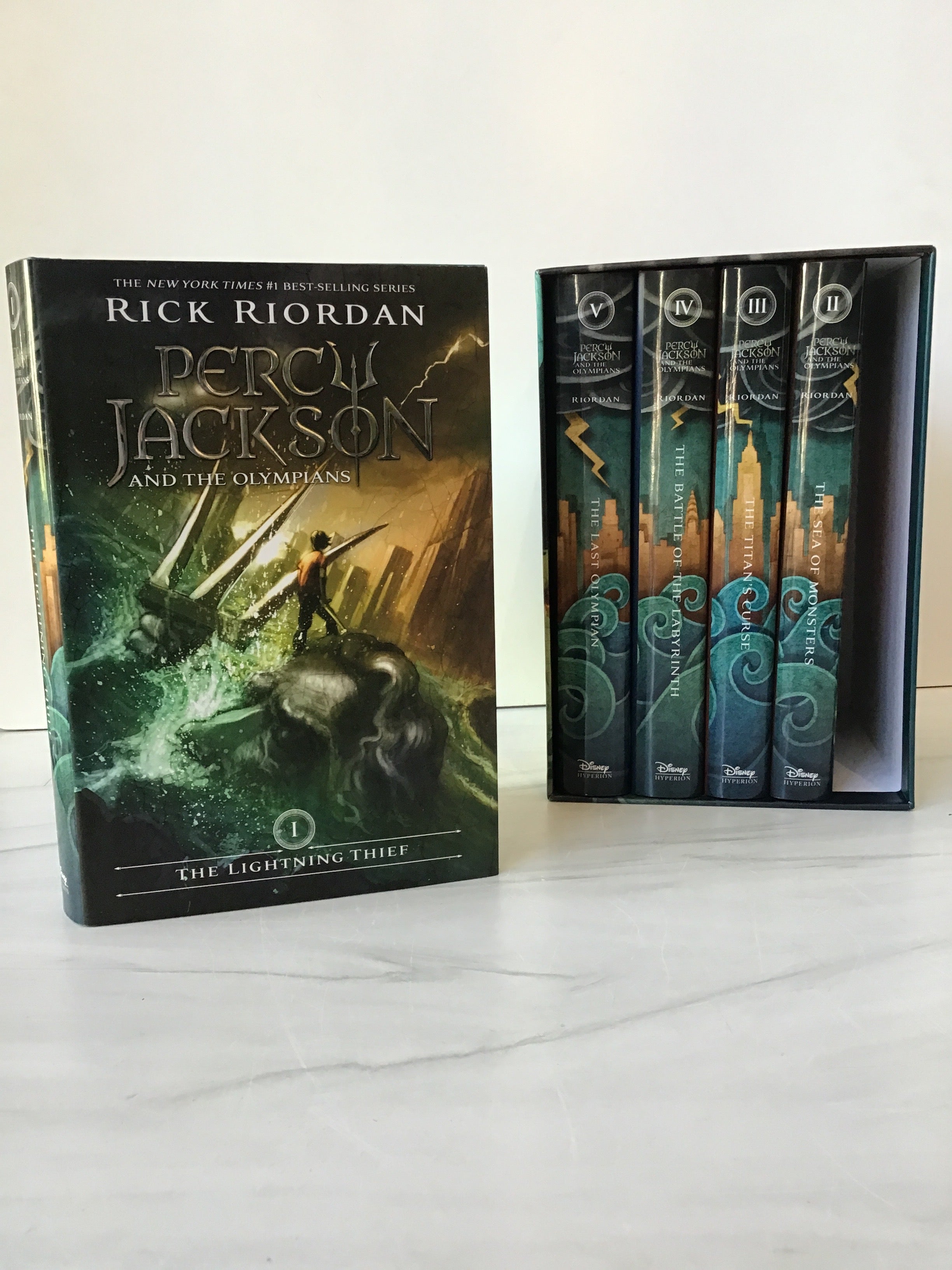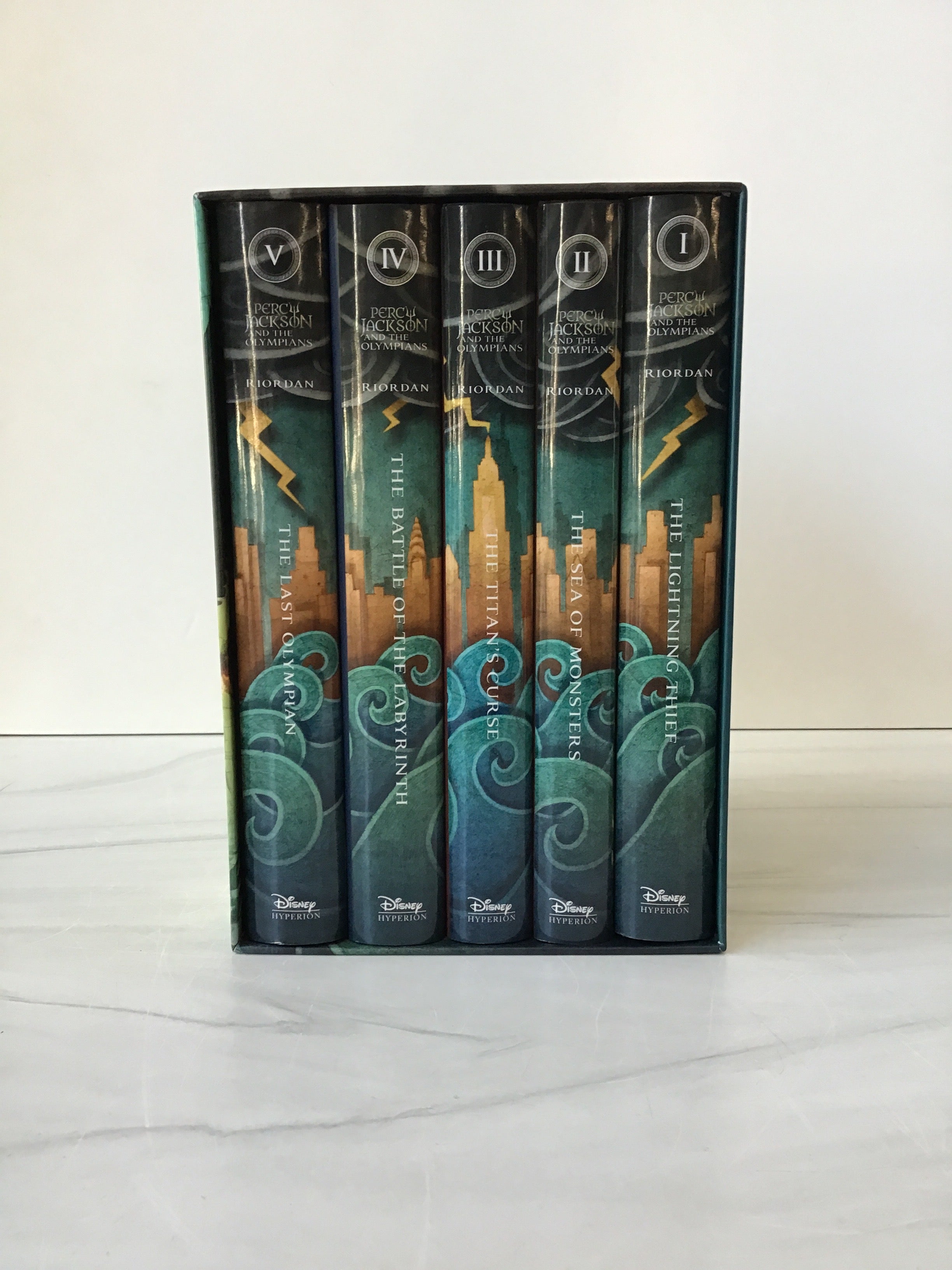 Five hardback books in a box set; 1. The Lightning Thief 2. The Sea of Monsters 3.The Titan's Curse 4. The Battle of the Labyrinth 5. The Last Olympian