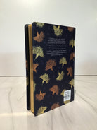 Hardcover; matte blue with orange and gold glossy illustrations and gold for-edge gilding.