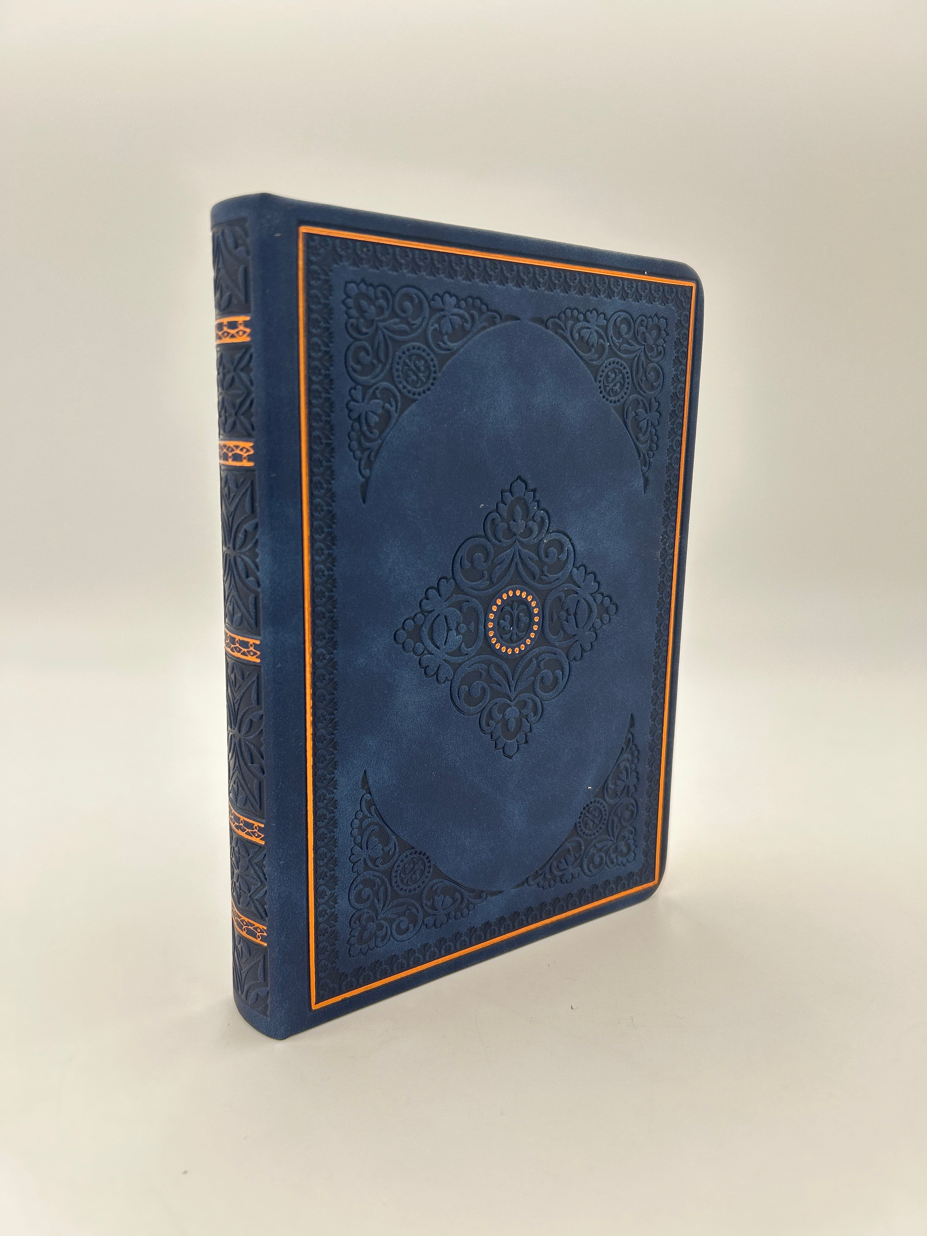 Embossed on front and back covers and spine. gold border on front and gold bands on spine
