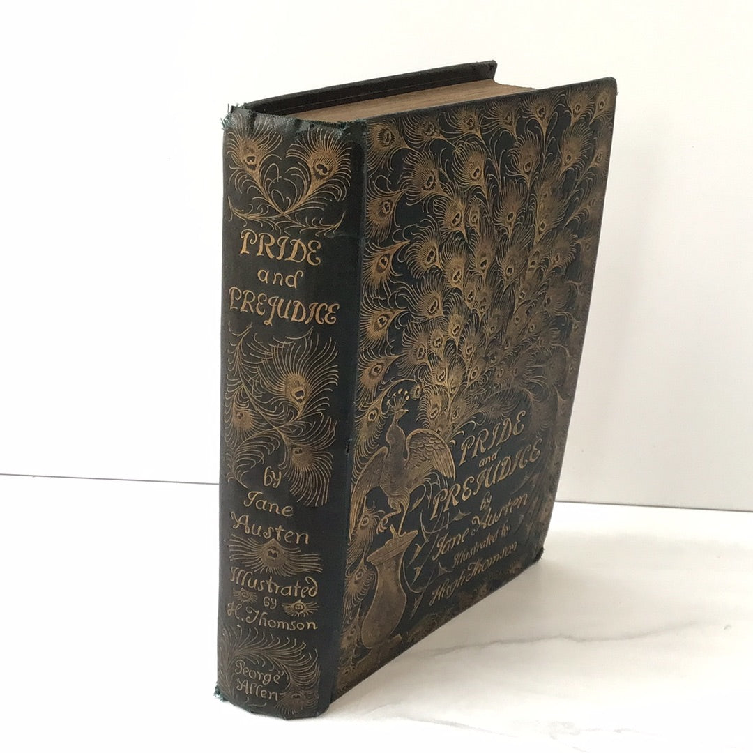 Beautiful Edition. Dark green leather with gold tooling of Peacock feathers on front and spine, illustrated by Hugh Thompson, typical foxing on pages typical to age.