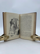 Smooth maroon leather with gilt ornamentation and title along the spine and upper board. Gilt top edge. Red ruled title page and illustrations throughout. Fine condition overall.
