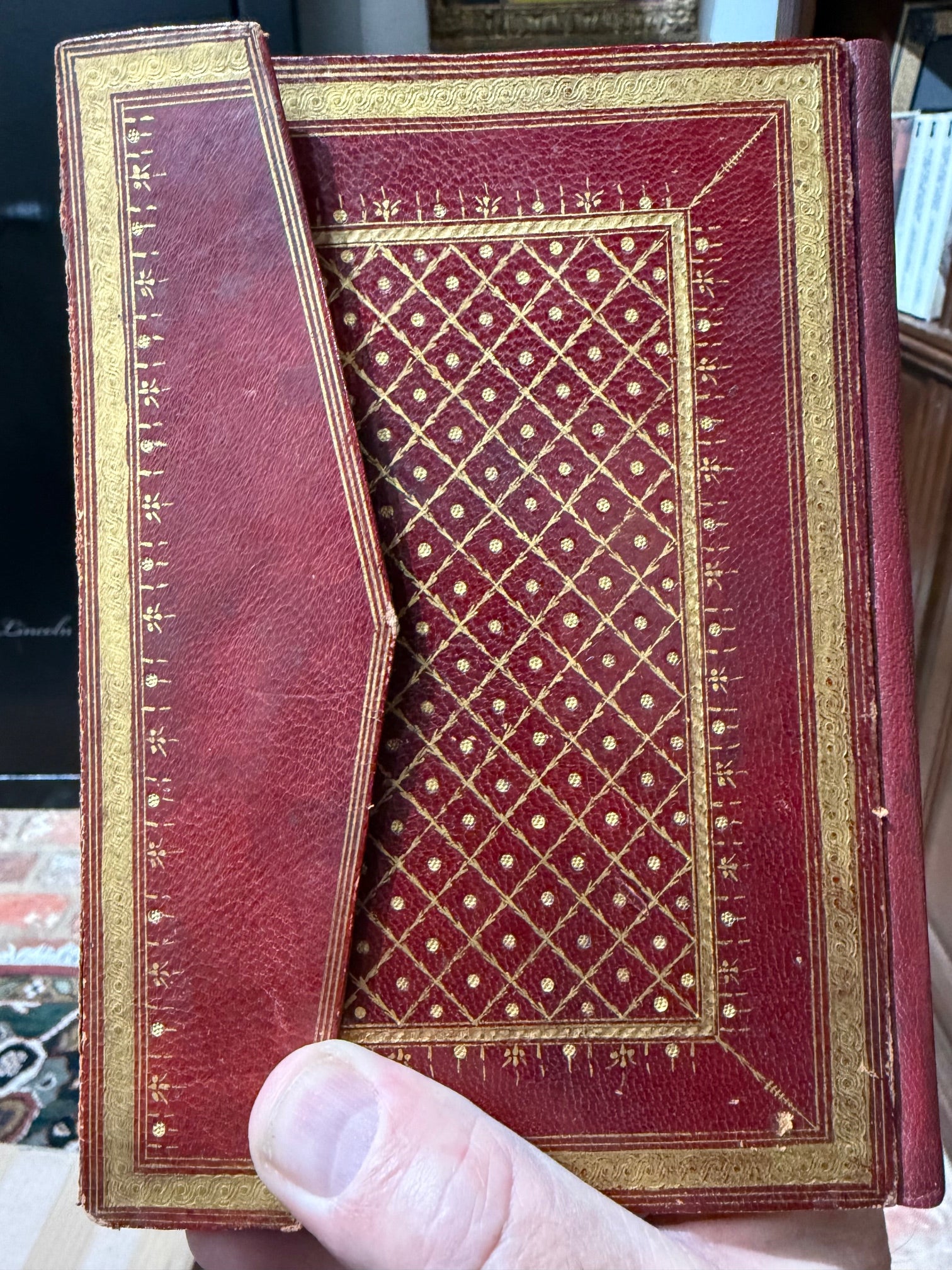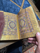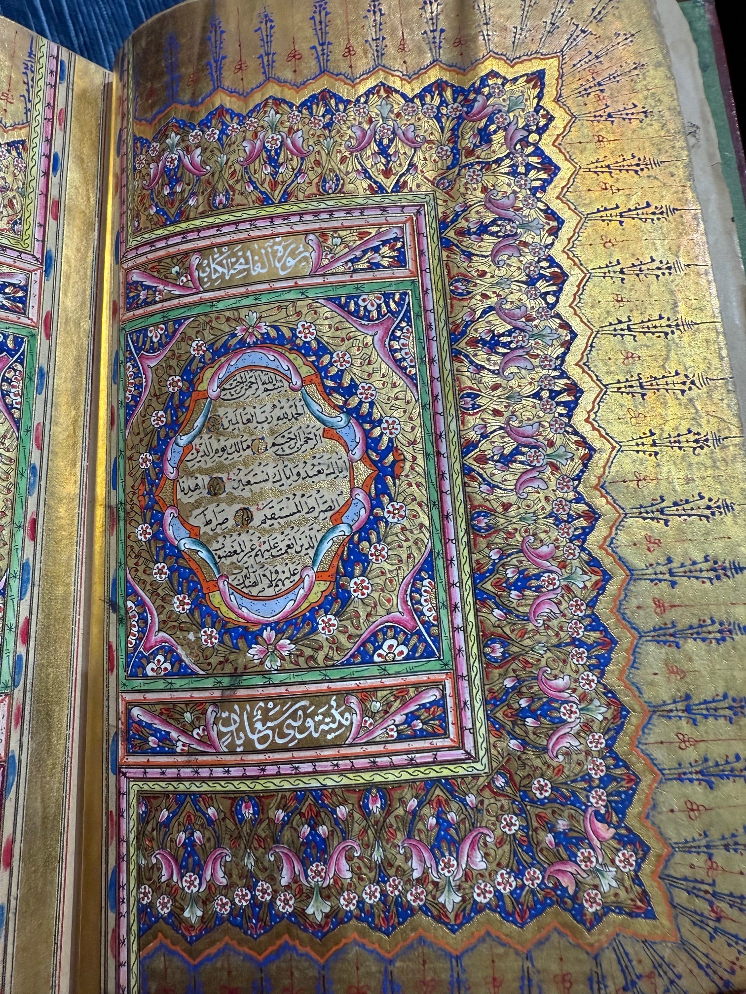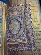 The most beautiful copy of the Qur'an we have ever acquired. A very luxurious copy in red morocco leather with gold tooling. Begins with Surah Al-Fatiha and the beginning of Surah Al-Baqarah in gilded script.