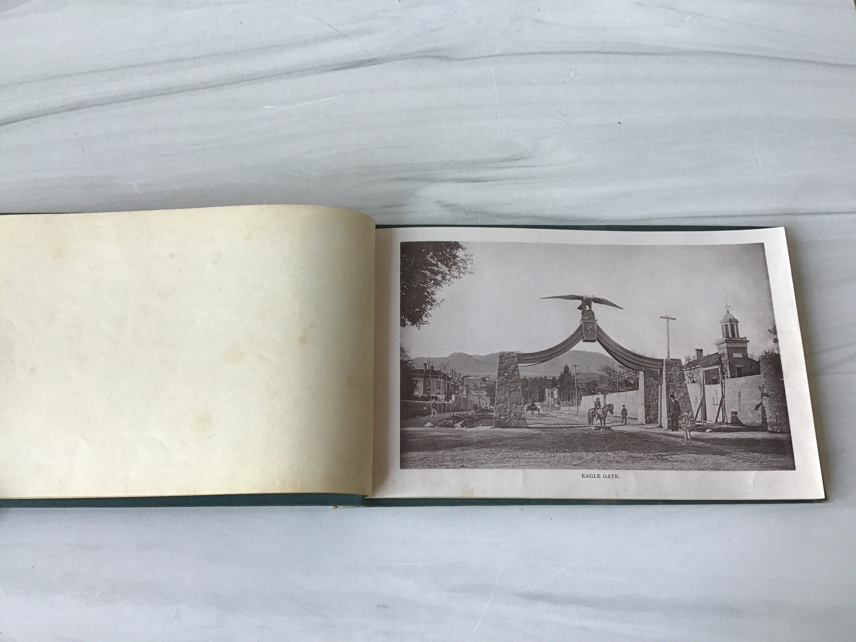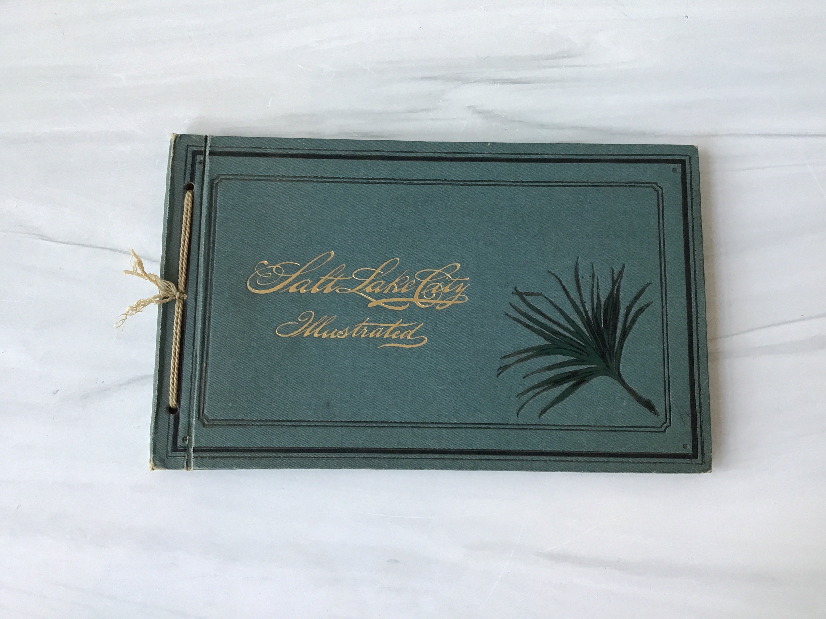 Teal hardbound with gold tooling, photos from 1889 Salt City Utah, slight rubbing on four corners, good condition.