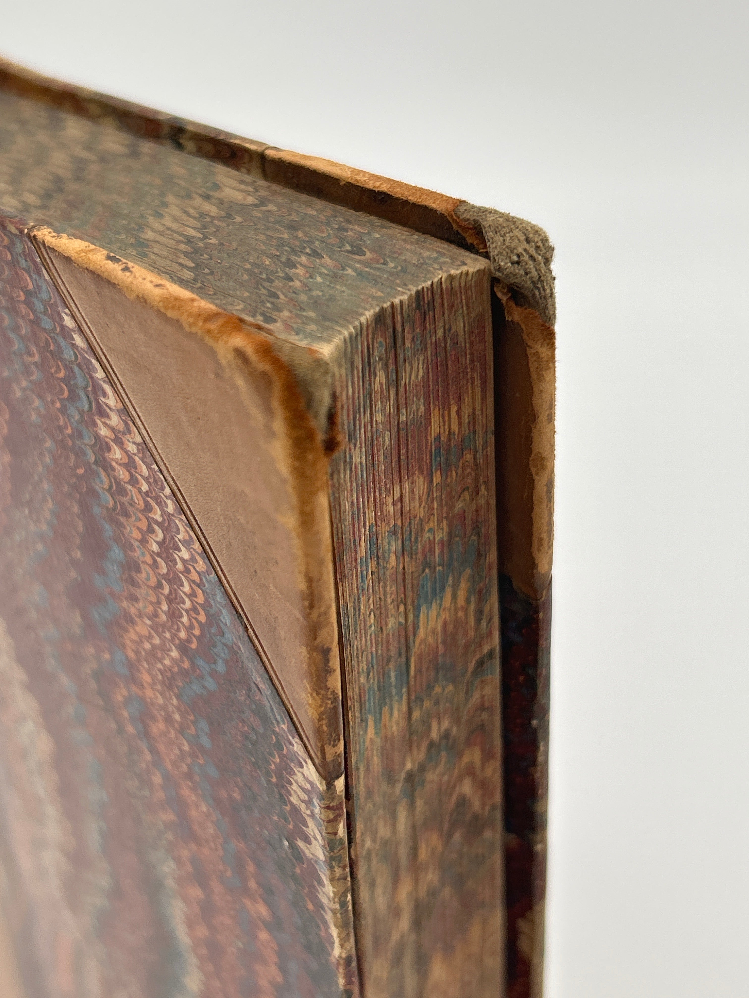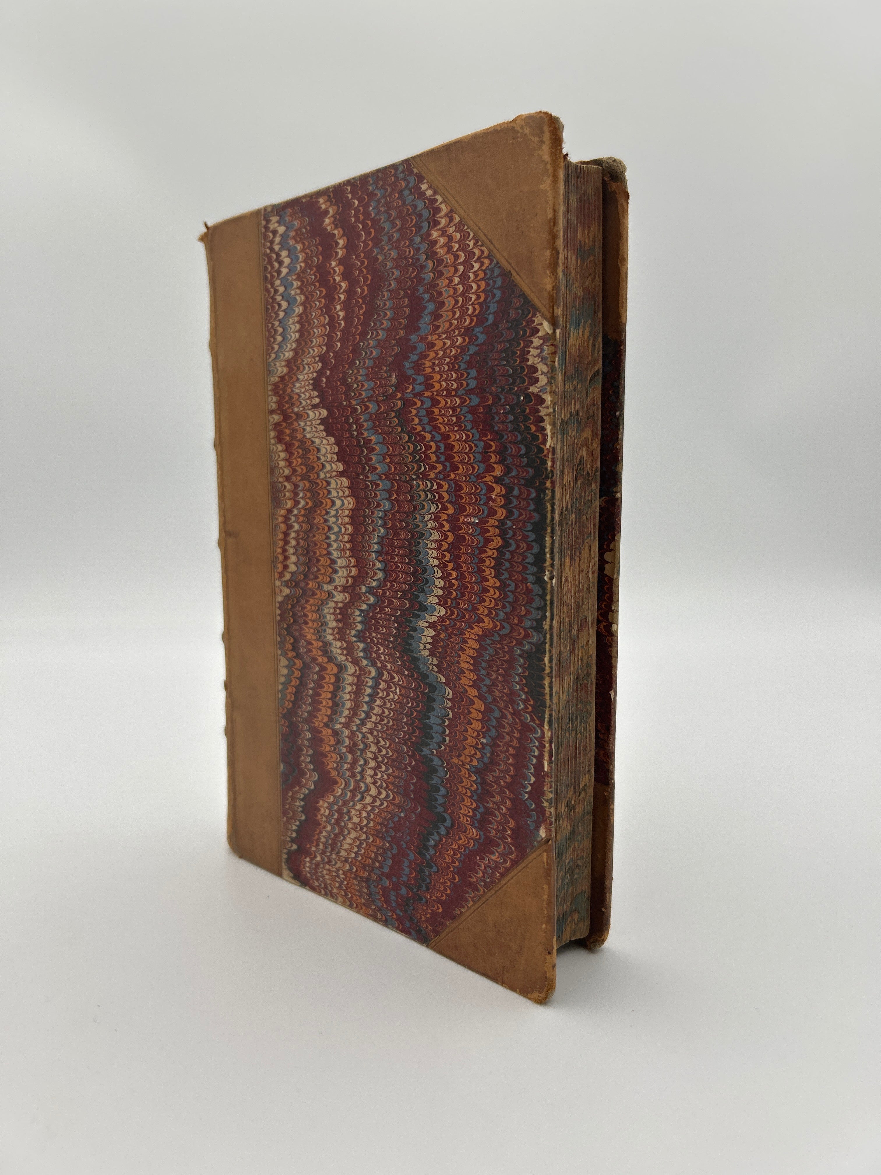 Caramel 3/4 leather with marble front, gold embossing and lettering on spine, burgundy label, marble three edge papers, marble end papers, fine condition.