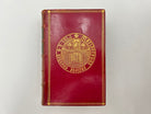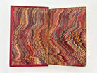 Cranberry leather set with gold embossing of Marlborough College on front, gold embossing and lettering on spin green label, marbling on each of the three edges, pocket size, very fine condition.