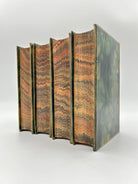 Green marble binding and three edge marble, beautiful spine gold embossing , burgundy book title, brown Vol label, very fine condition