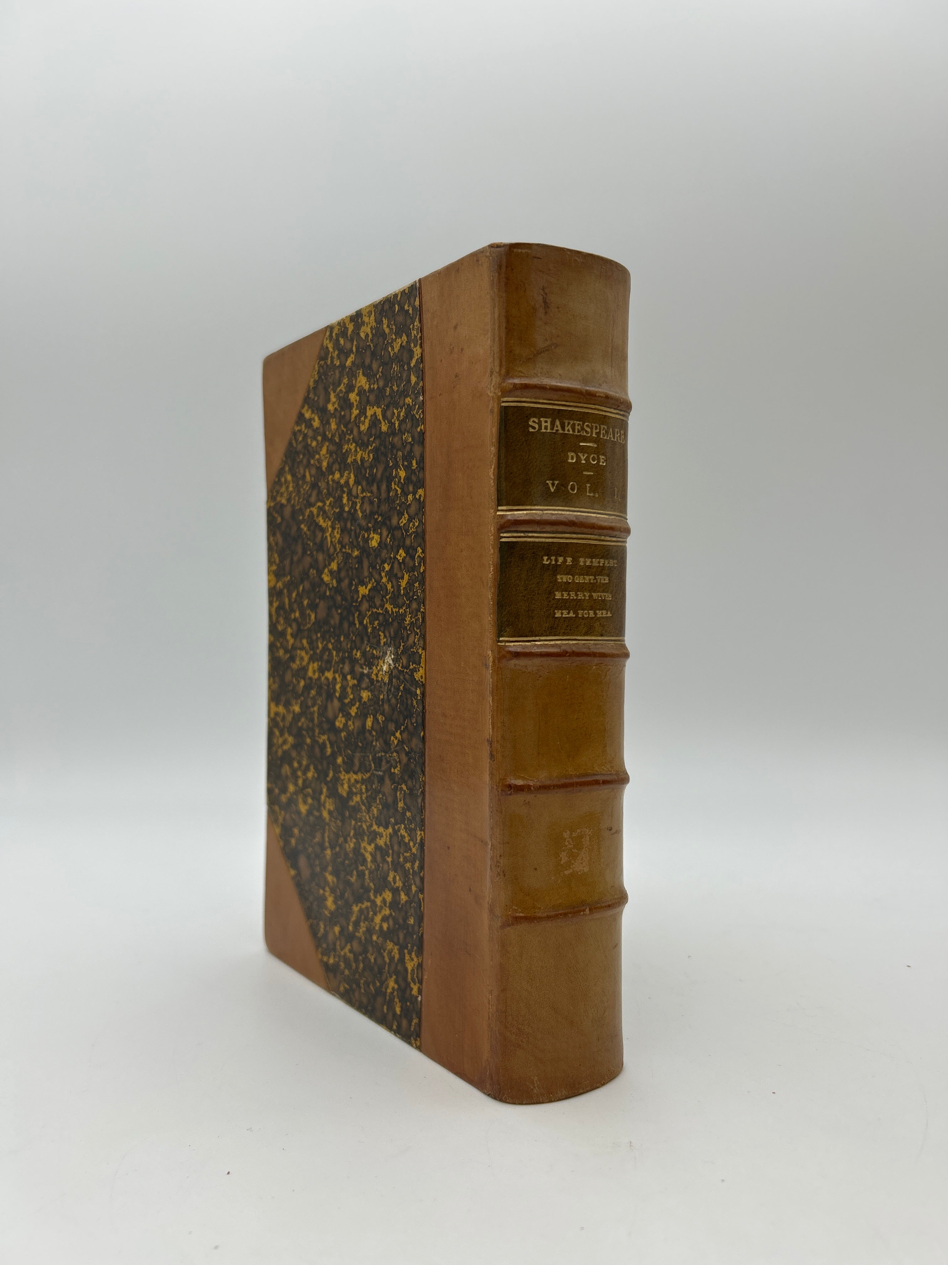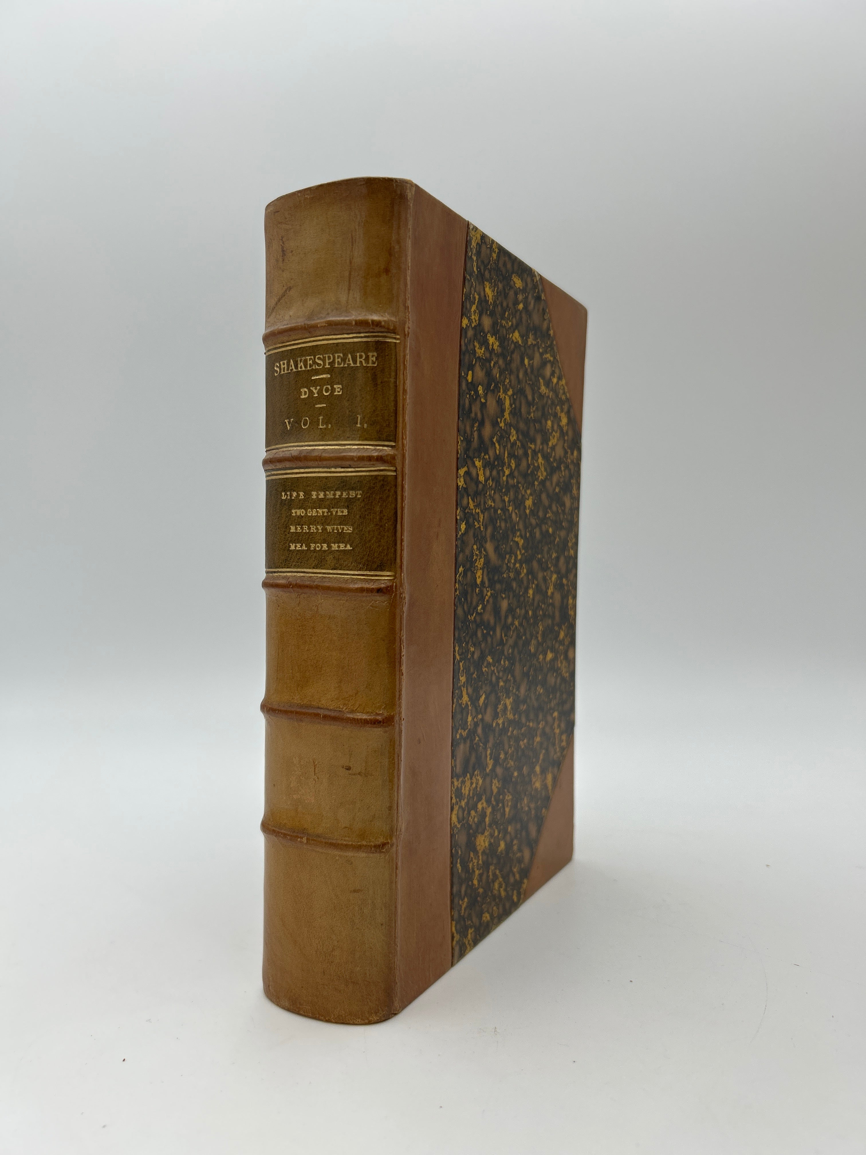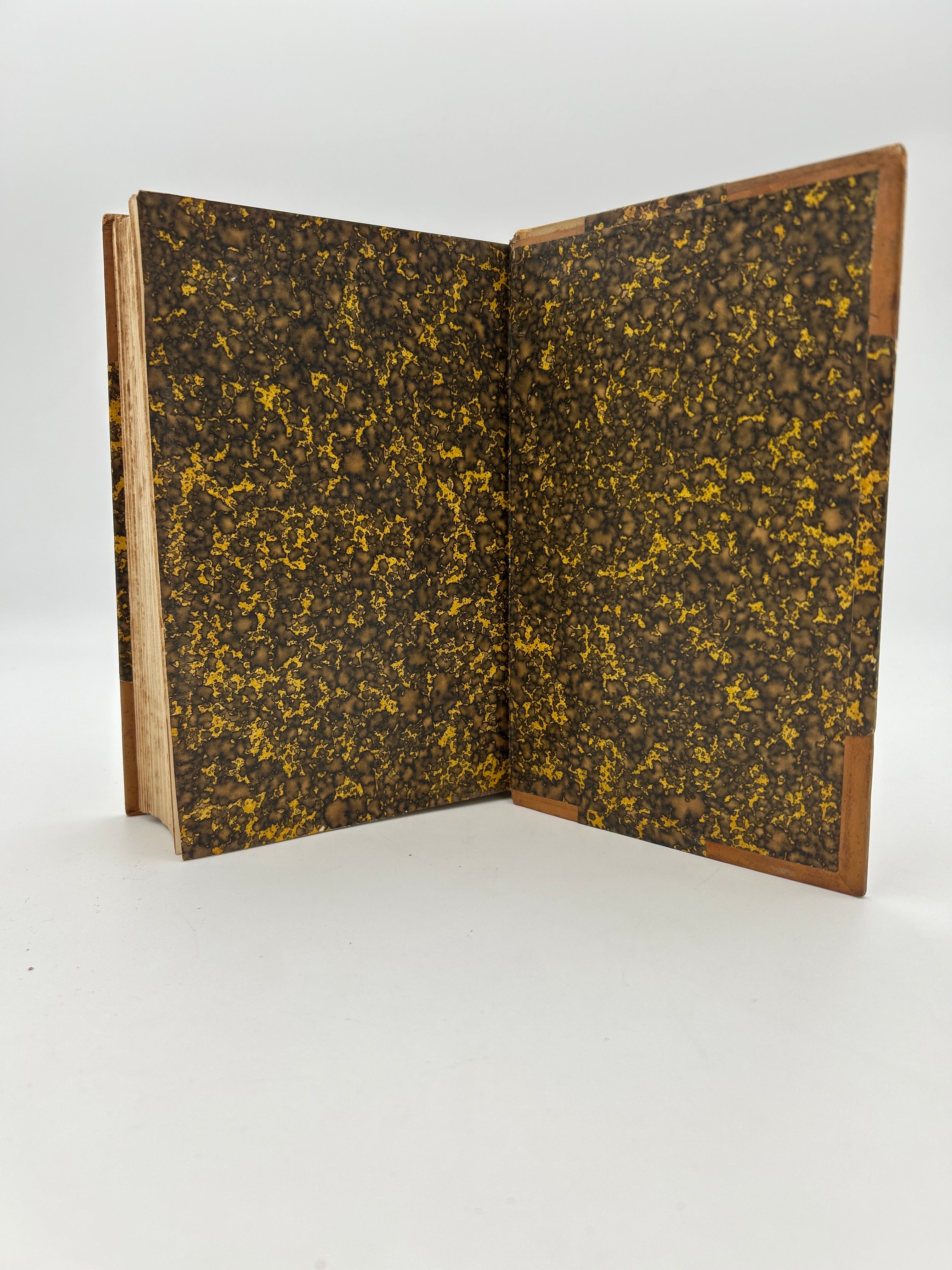 Tan 3/4 leather with marbled front and back, marble end papers, gold lettering on spine brown label, five raised bands, fine condition.