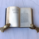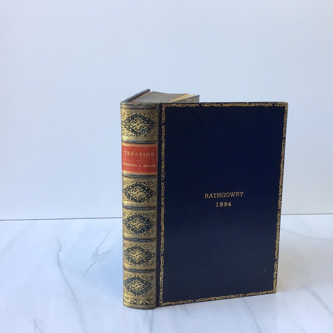 Beautiful navy full leather binding with gold tooling. Marbled edges around text block.