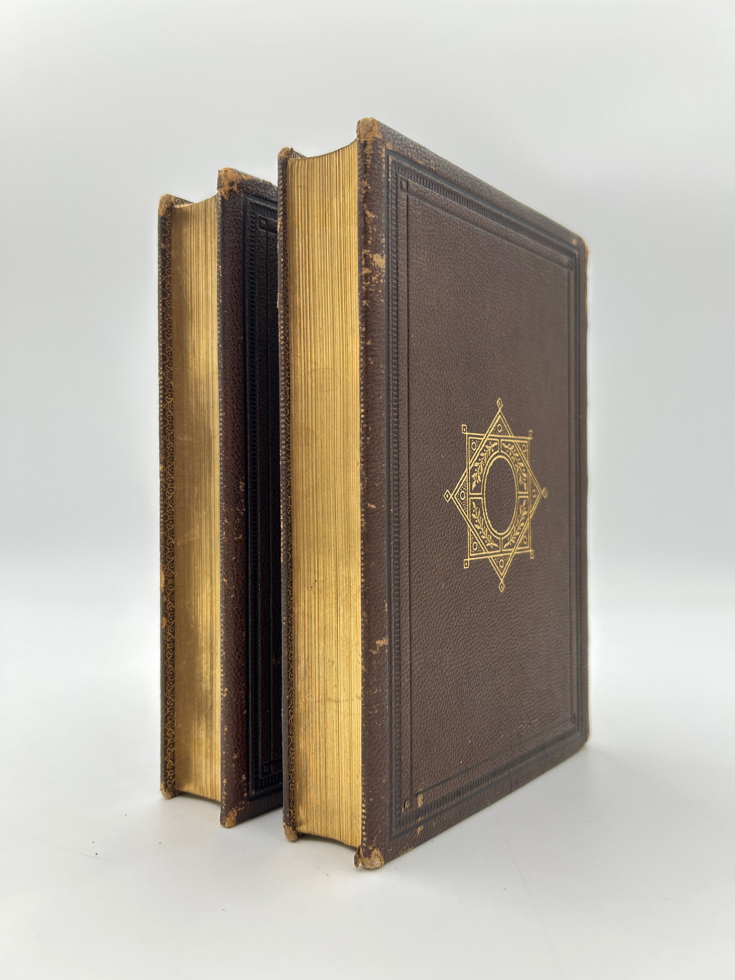 Leather rubbed at corners and along edges of spines, endband missing at top of vol. 1 and detaching at bottom of vol. 1 and top of vol. 2, textblocks in good condition with few signs of wear