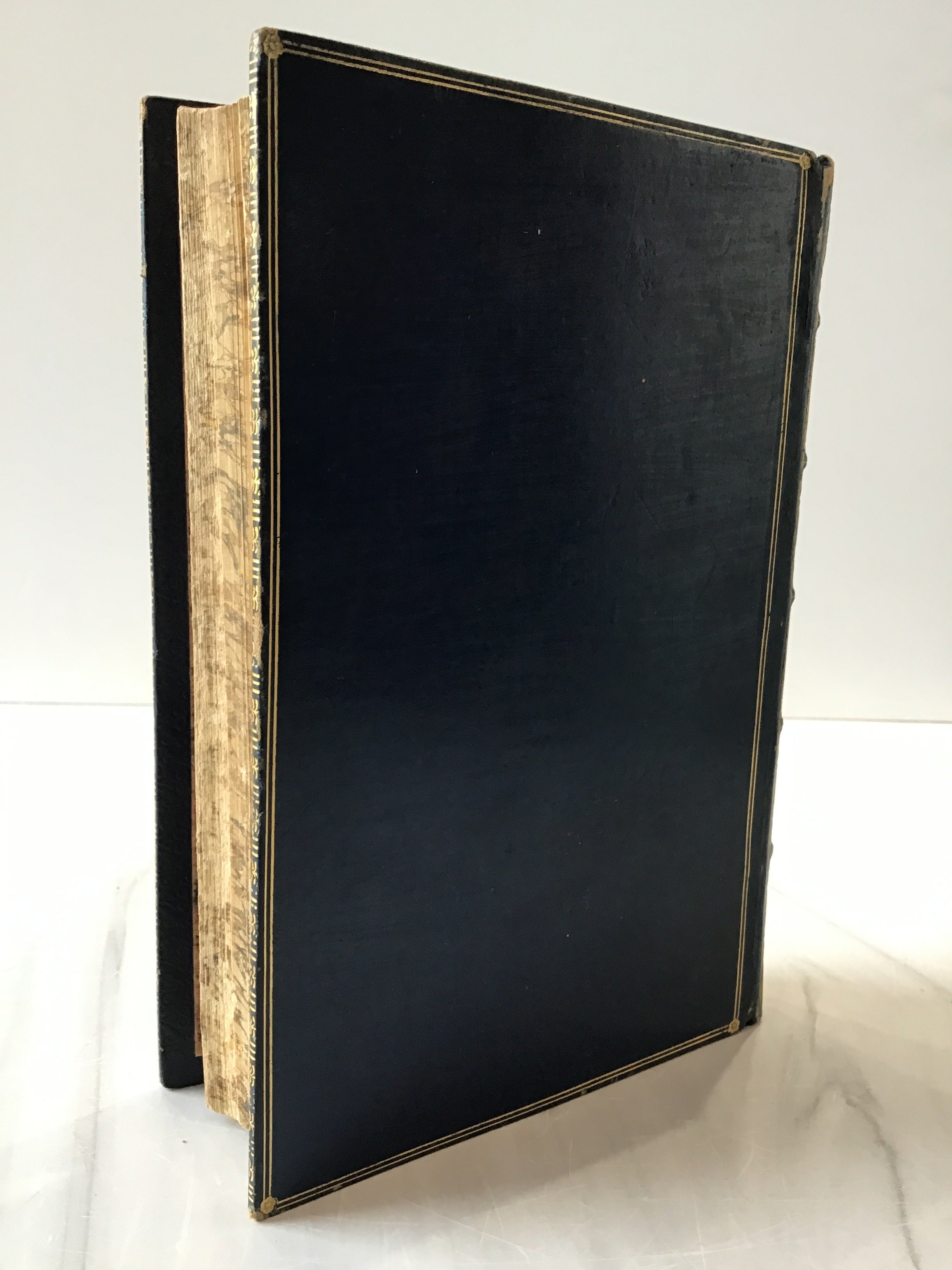 Blue leather presentation copy, brown label and gold lettering, Excellent condition