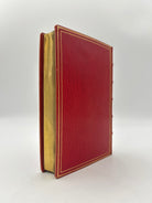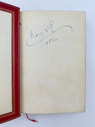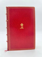 Bound by Sangorski and Sutcliffe in red Morocco with triple fillet boarders to upper and lower covers. Center of upper cover is monogram “M. R.” In gilt beneath a gilt crown. Five raised bands with second compartment lettered in gilt. Gilt and red leather turn ins. All edges gilt. Front free endpaper signed by Queen Mary “Mary R. 1951”. Immaculate condition.