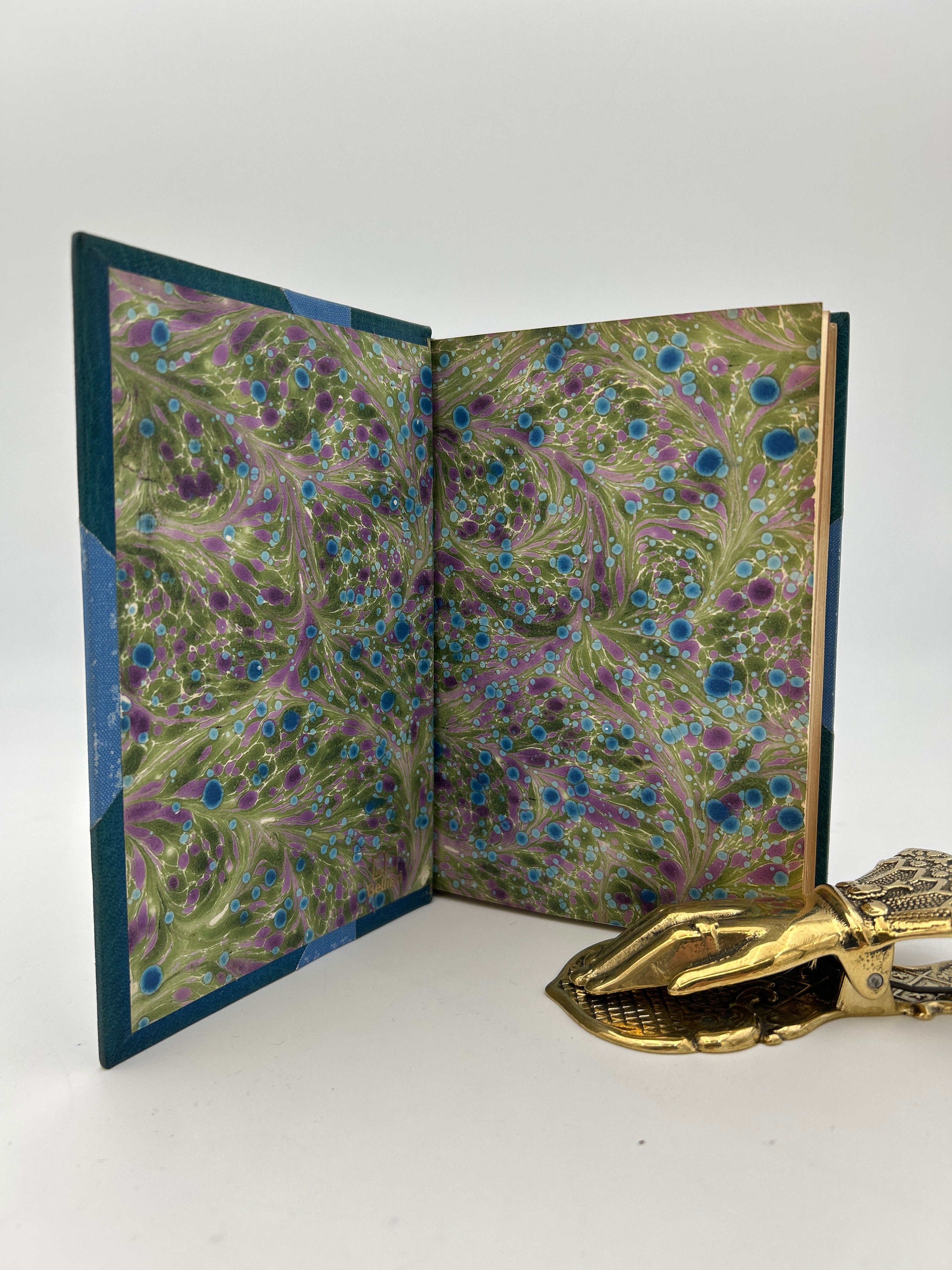 Blue cloth boards with three quarter blue leather. Five raised bands with gilt embossed elements in each compartment except the second and third which showcases gilt lettering. Marbled endpapers. Many illustrations throughout. Eight colored plates. Gilt top edge. Some sun-fading to the spine, otherwise pristine condition.