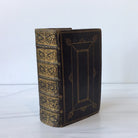 Full black leather binding with gold tooling on covers and spine. Raised bands on spine. Marbled pages inside
