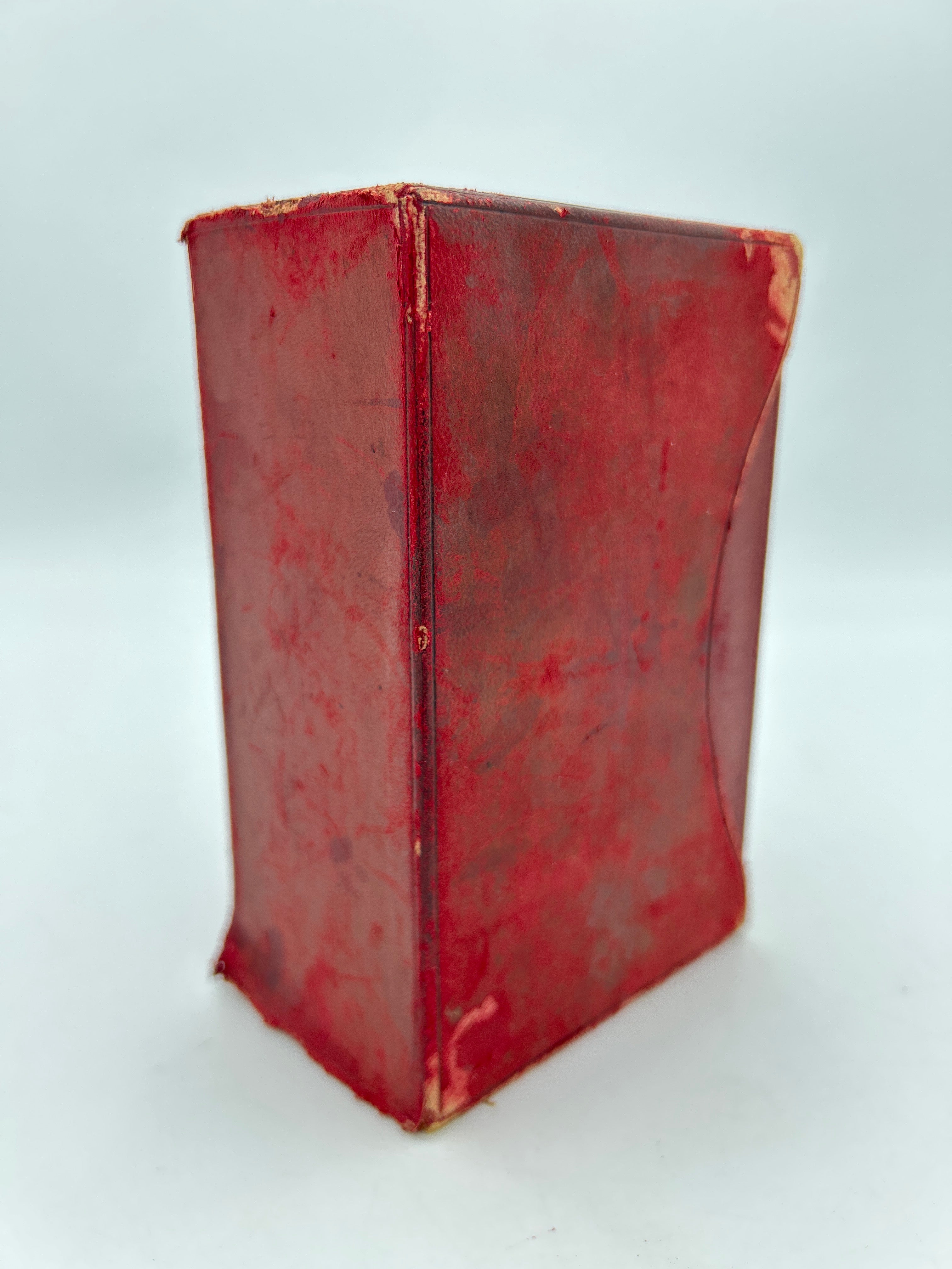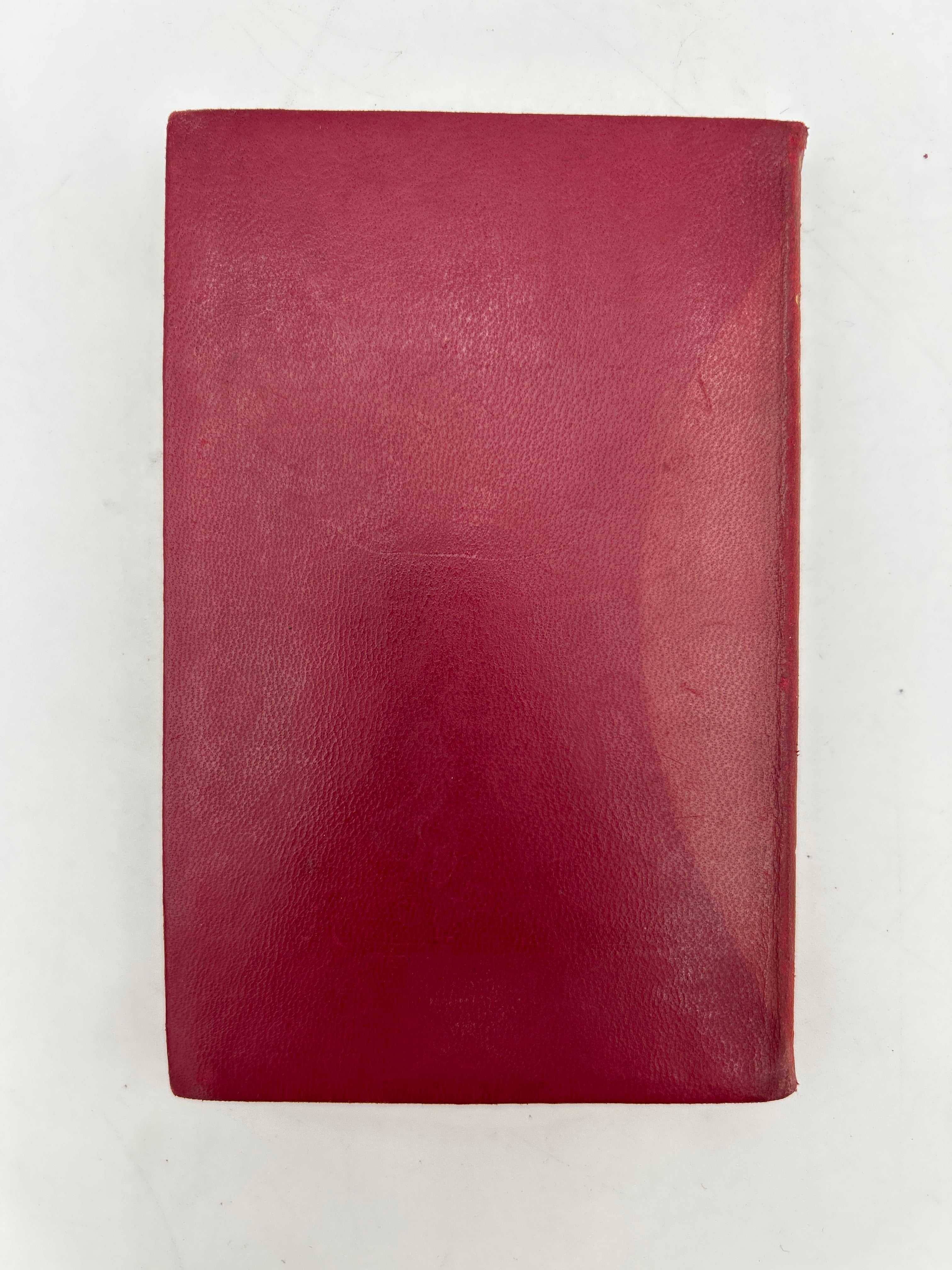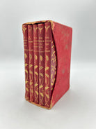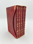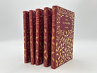 All five volumes fit snugly in the original red leather slip case which is faded and chipping at the entrance, corners, and edges. Leather beginning to come away at foot of spine but still fully intact. Good condition overall.