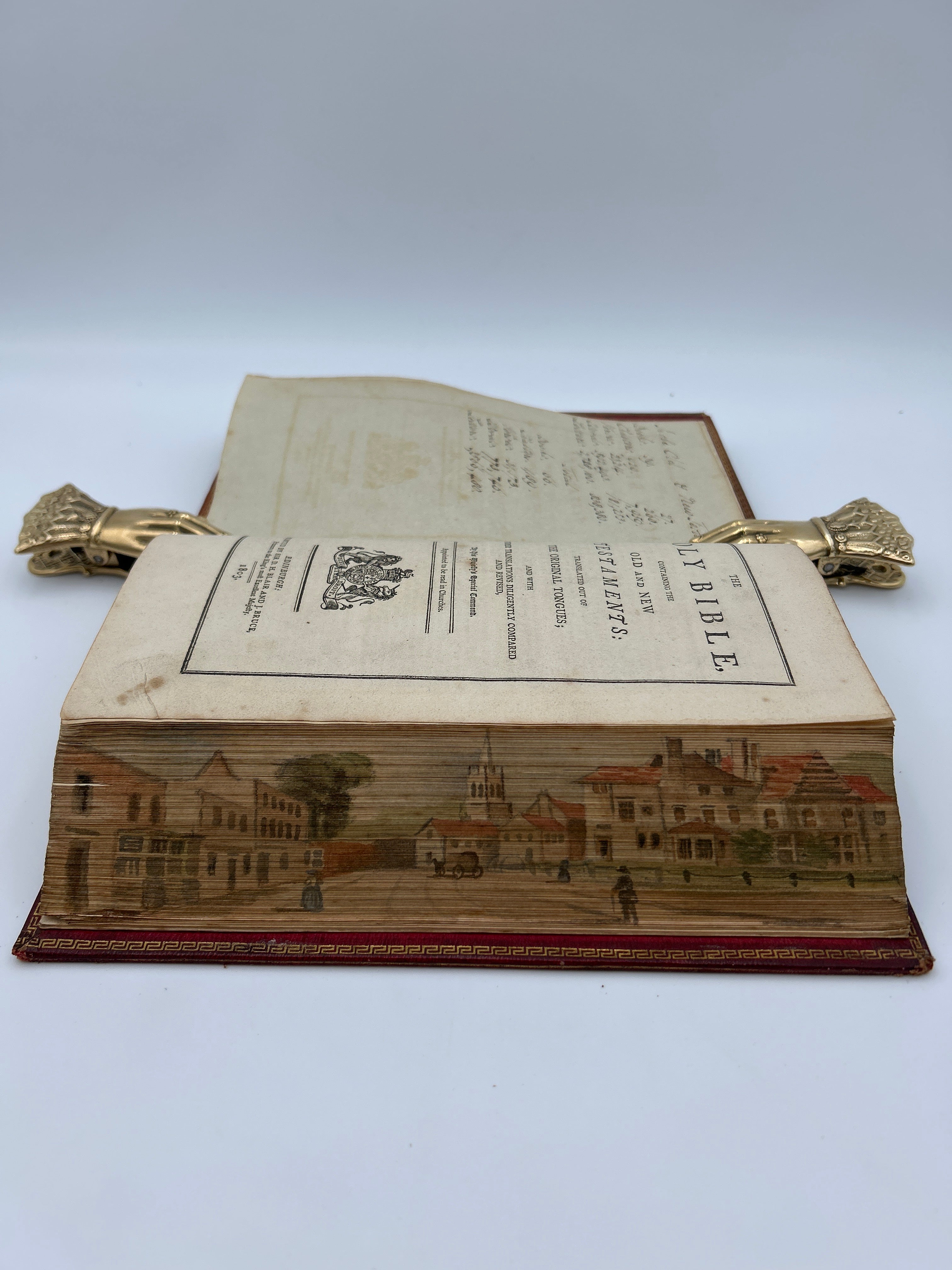 The Scottish Bible from the early 1800s stands as a testament to both religious devotion and fine craftsmanship. Its pages, steeped in the rich heritage of Scotland, bear witness to centuries of faith and tradition. What truly sets this edition apart, however, are its remarkable fore-edges, adorned not with one, but with two distinct designs. Each delicate illustration, meticulously rendered by skilled hands, offers a glimpse into the artistic sensibilities of the era and the reverence with which the scriptures were held. As the pages turn, revealing passages of wisdom and inspiration, these fore-edge paintings serve as a poignant reminder of the enduring power of faith and the beauty of human creativity.