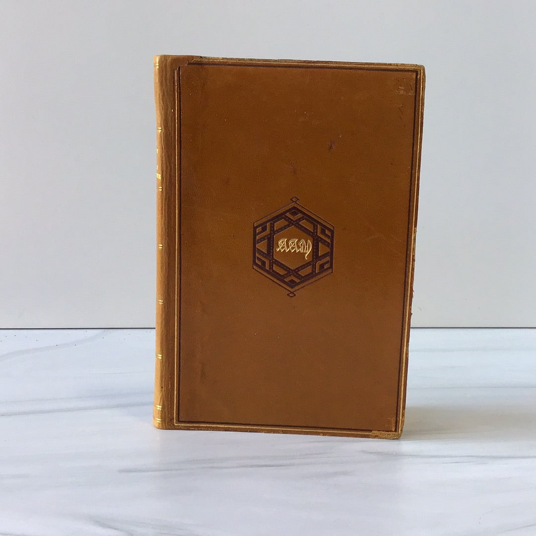 Brown, full leather binding with beautiful guilding on spine and turn ins. Has an gilded AAM with a beautiful design around the monogram. Excellent condition. Printed in London.