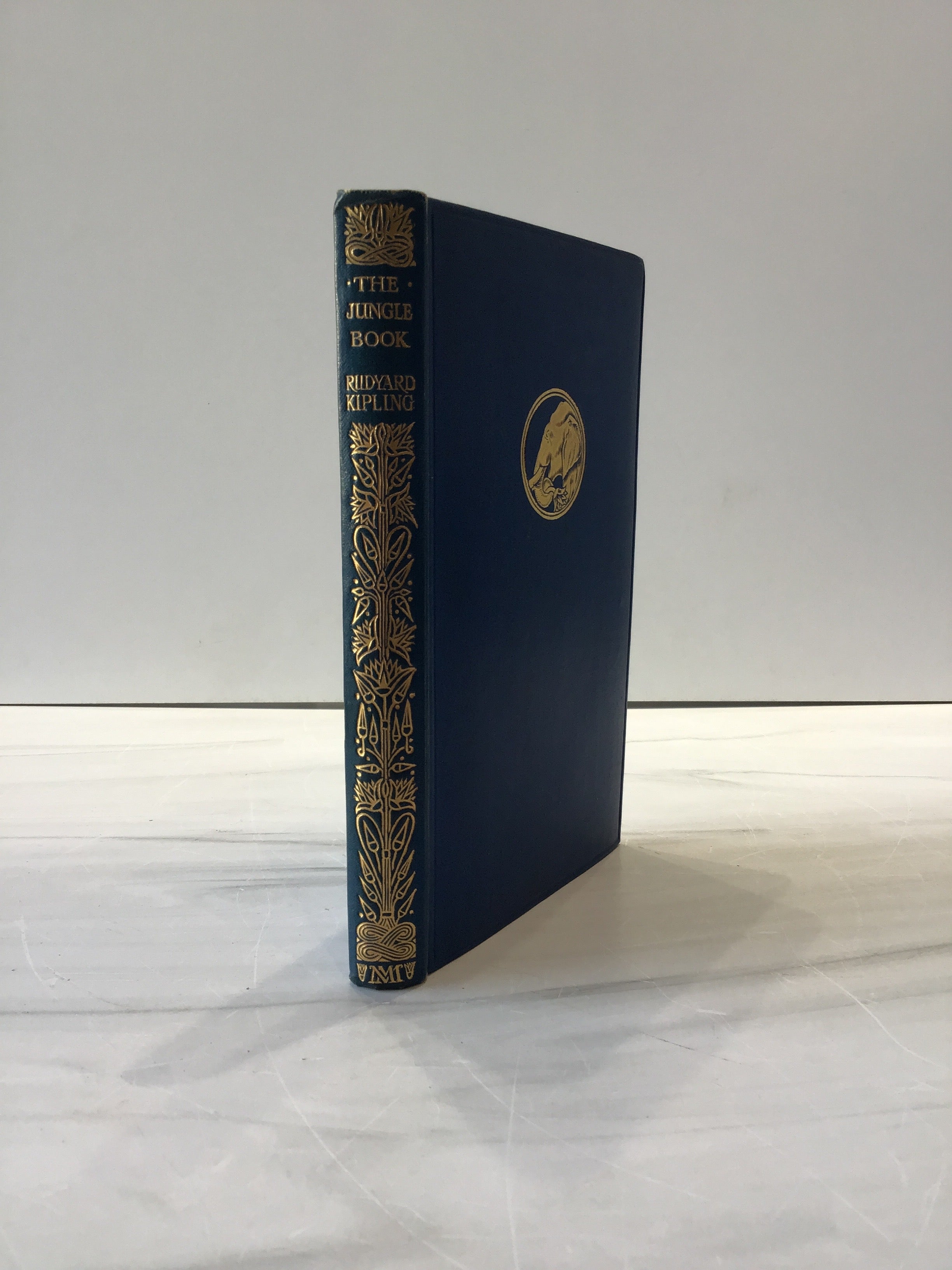 Blue hardback, gold emblem on front, gold tooling on. spine