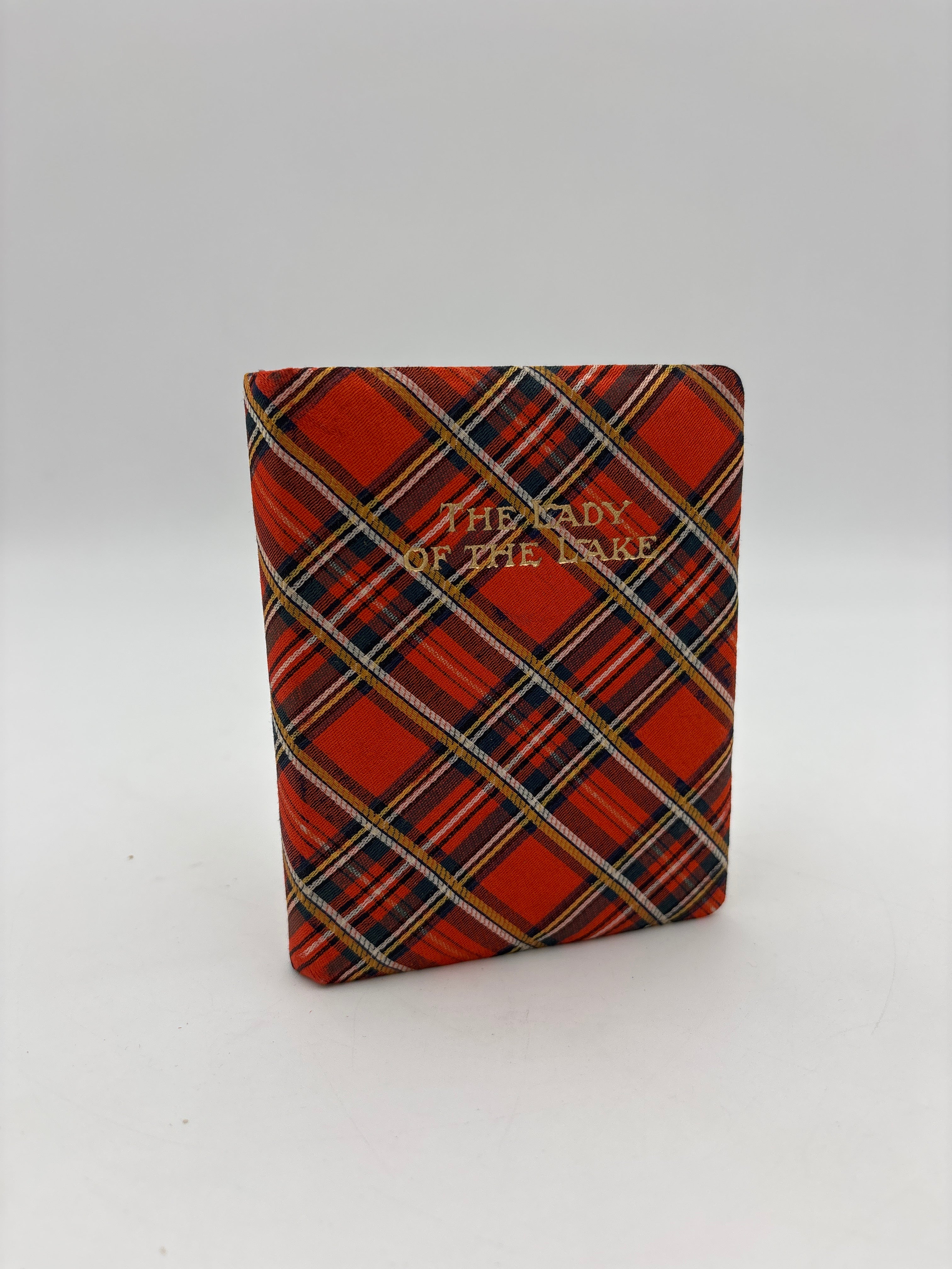 Beautiful Scottish plaid binding with gold tooling title on front, intact, contained in a little cardboard box, very fine condition