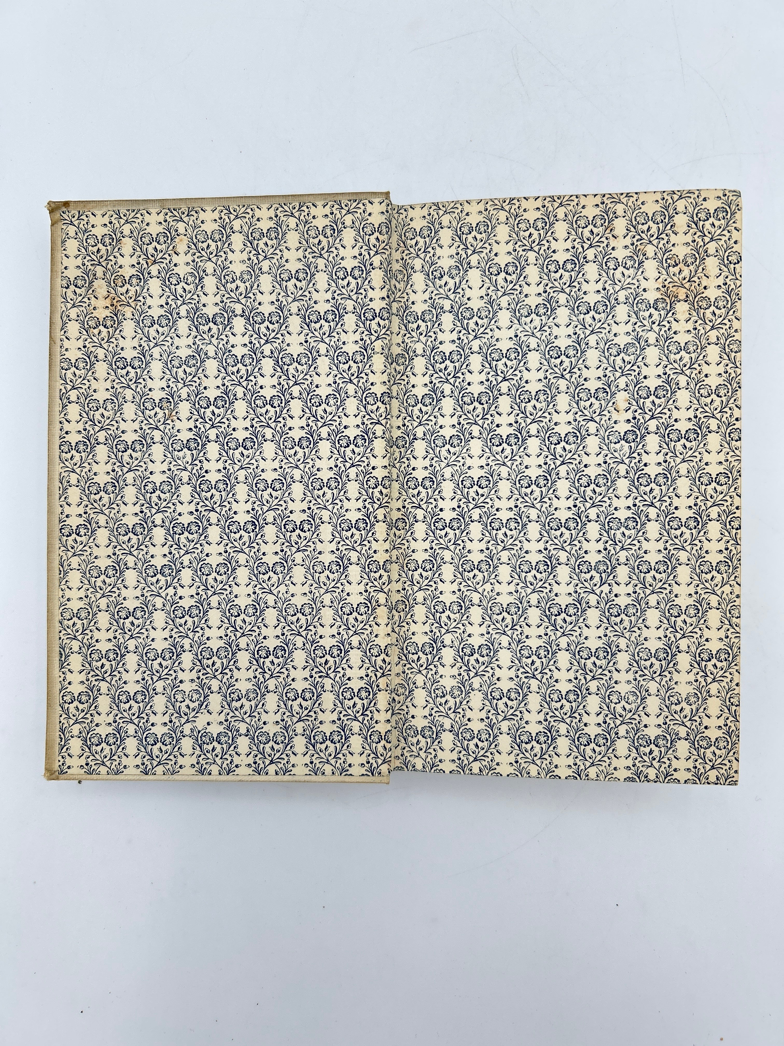 Pocket edition hardback, blue and cream binding, three edge floral. Stylized blue floral design to complete binding and endpapers. Sun-fading to spine. Very good condition.