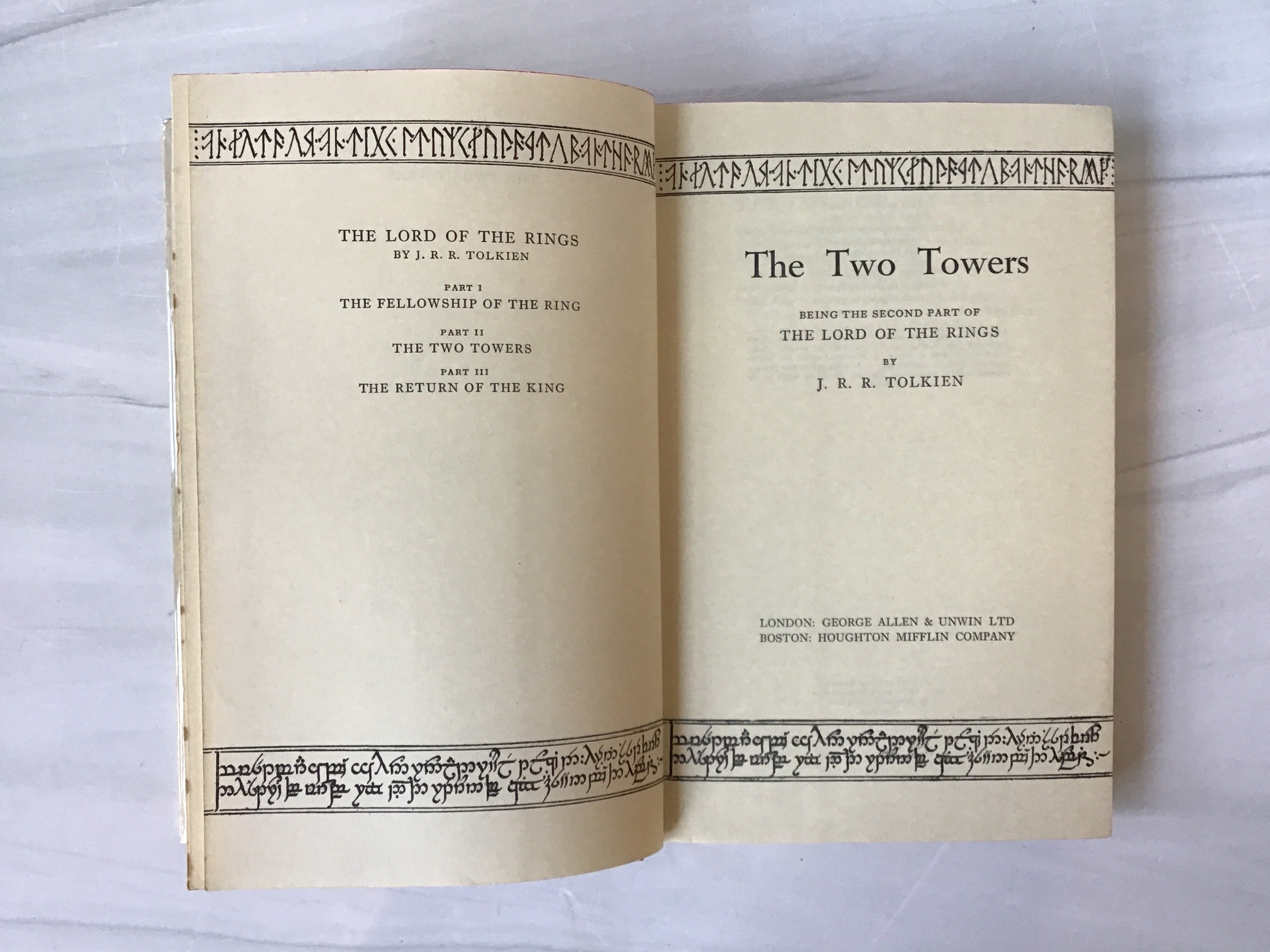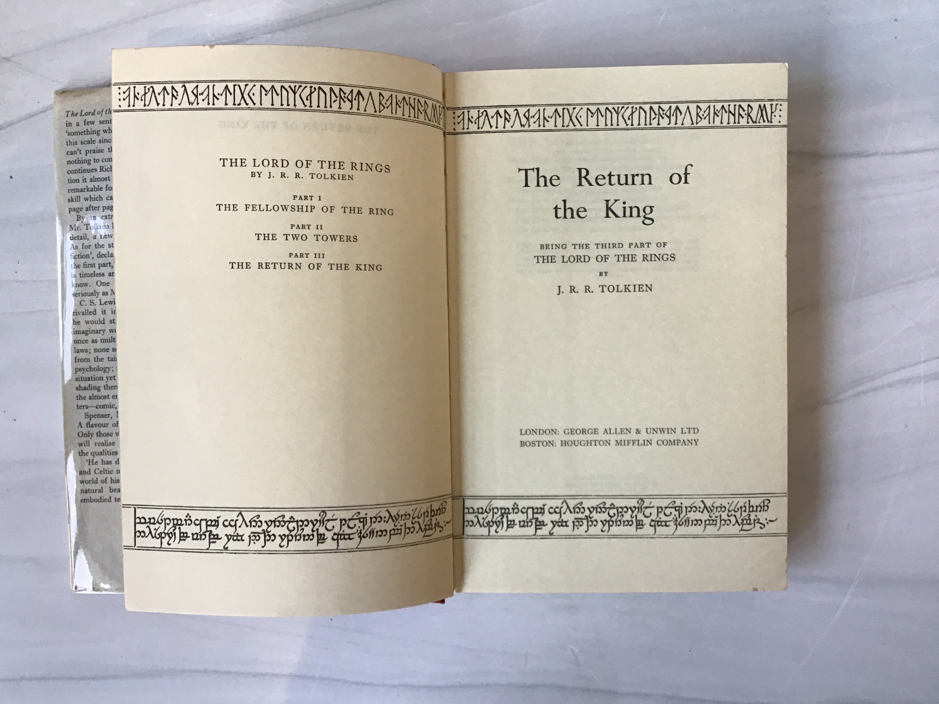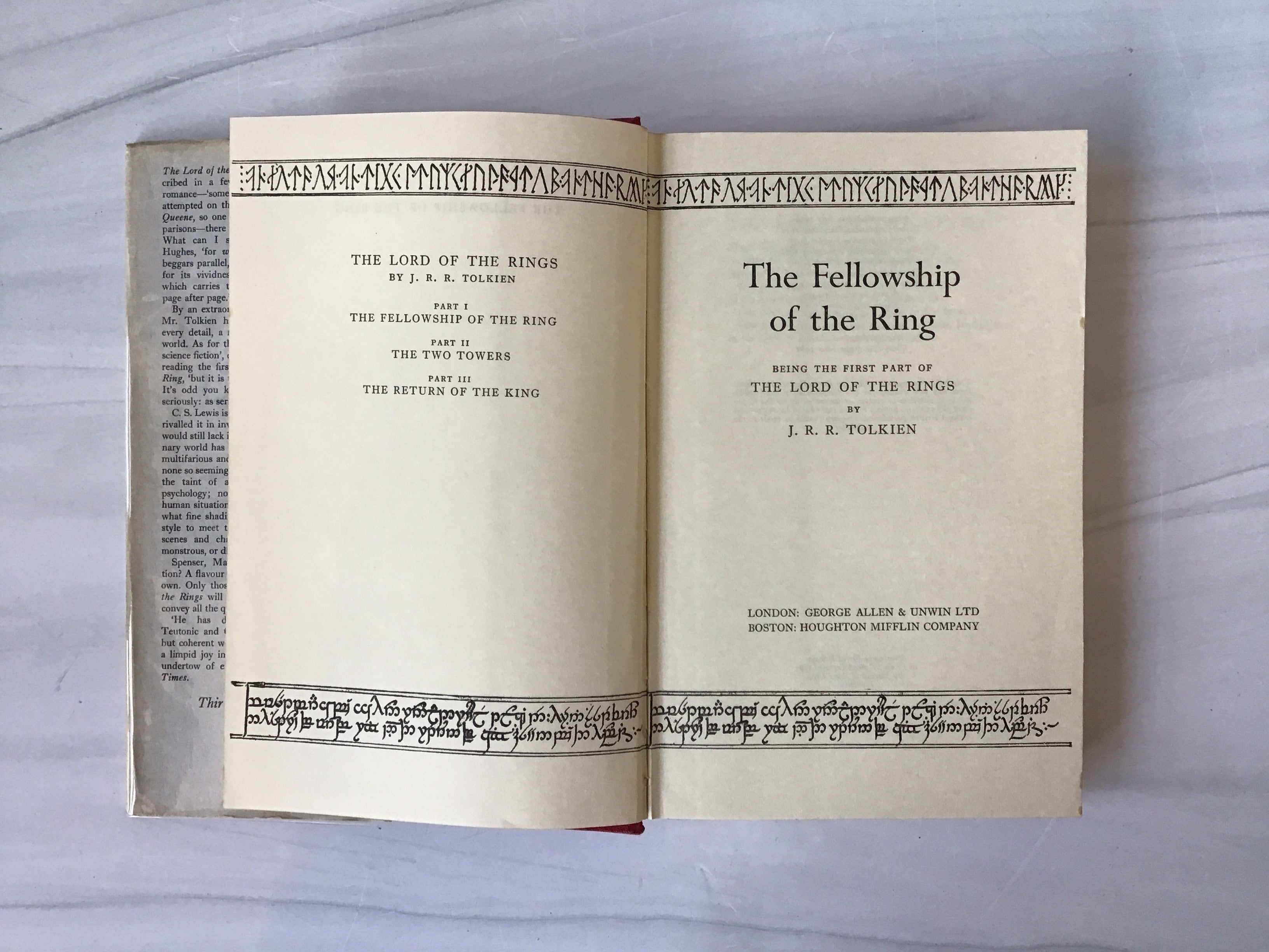 b, 1963 3 volumes to include: The Fellowship of the the Ring, The Two Towers, The Return of the King by J.R.R. Tolkien