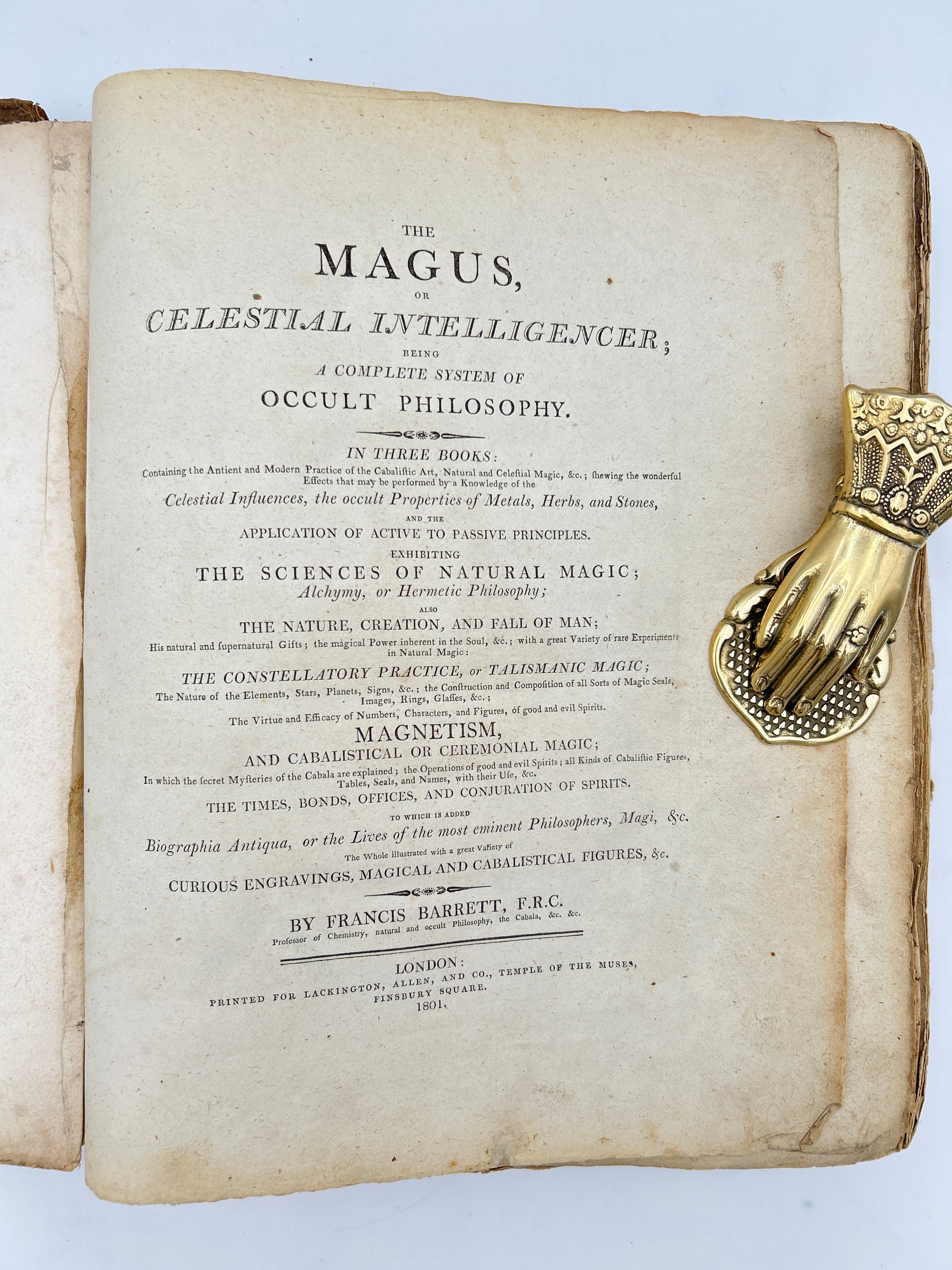 The Magus: Celestial Intelligencer, often simply called The Magus, is a well-known occult compendium compiled by Francis Barrett (not Frances Barnett) and first published in 1801. Barrett, a British occultist and student of esoteric traditions, aimed to make the teachings of older magical texts more accessible to a new generation of English readers. The Magus is a dense and richly illustrated work that draws heavily on earlier sources such as Cornelius Agrippa’s Three Books of Occult Philosophy, Pietro d’Abano’s writings, and various grimoires and alchemical treatises. It covers a wide array of magical subjects including ceremonial magic, natural magic, astrology, talismanic magic, and the invocation of spirits, with an emphasis on both practical rituals and philosophical underpinnings.