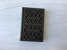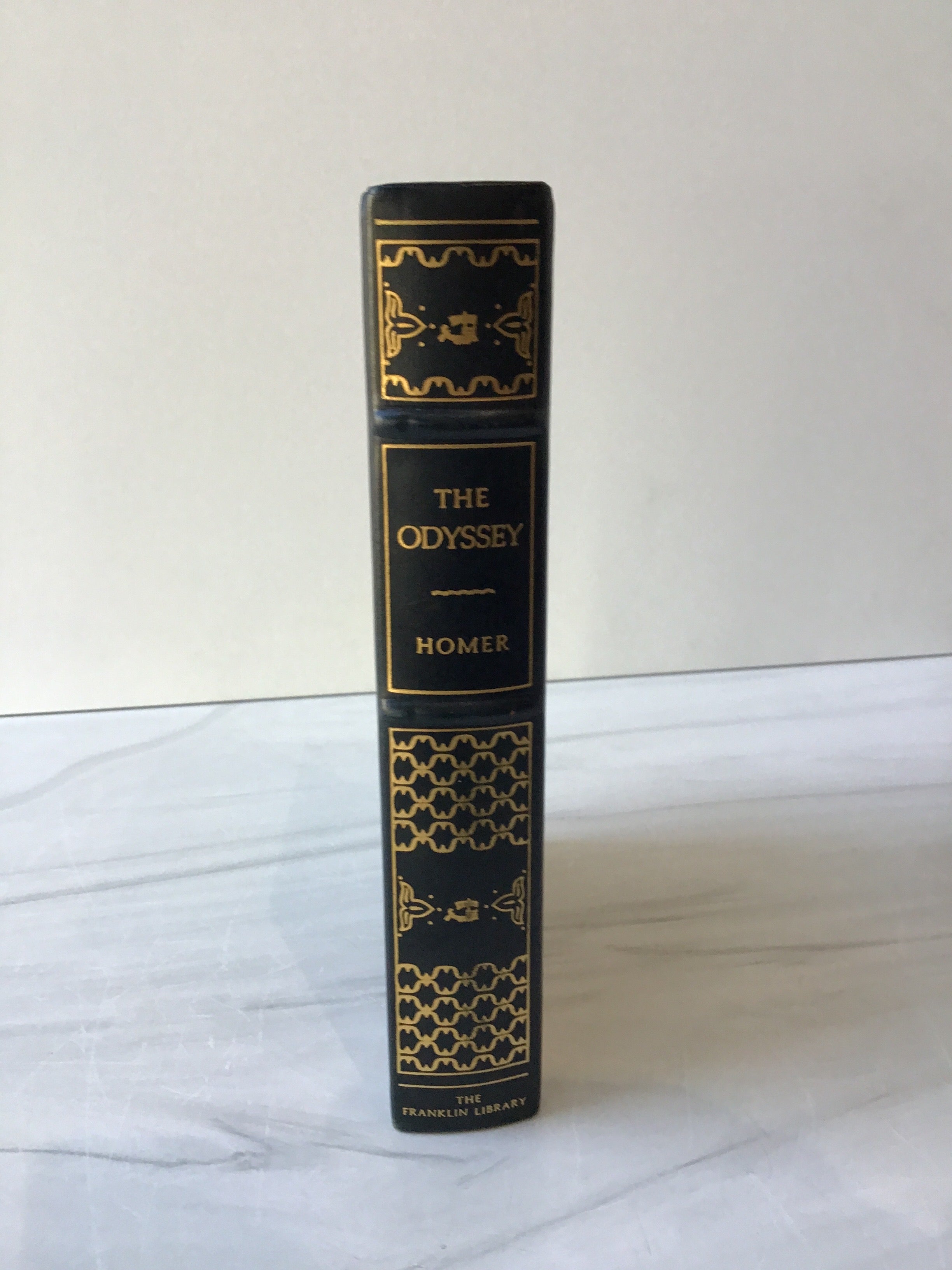 Navy leather bound hardback with gold embossed design on front and back covers with gold embossed lettering on the spine. Gold fore edge design, yellow silk bookmark, and two raised bands. Pristine Easton Press edition.