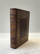 Dark brown genuine leather hard cover with gold embossing on the covers and spine with gold lettering on the spine. Gold fore edge with dark brown silk bookmark. Brown illustrations throughout. Pristine Franklin Edition copy.