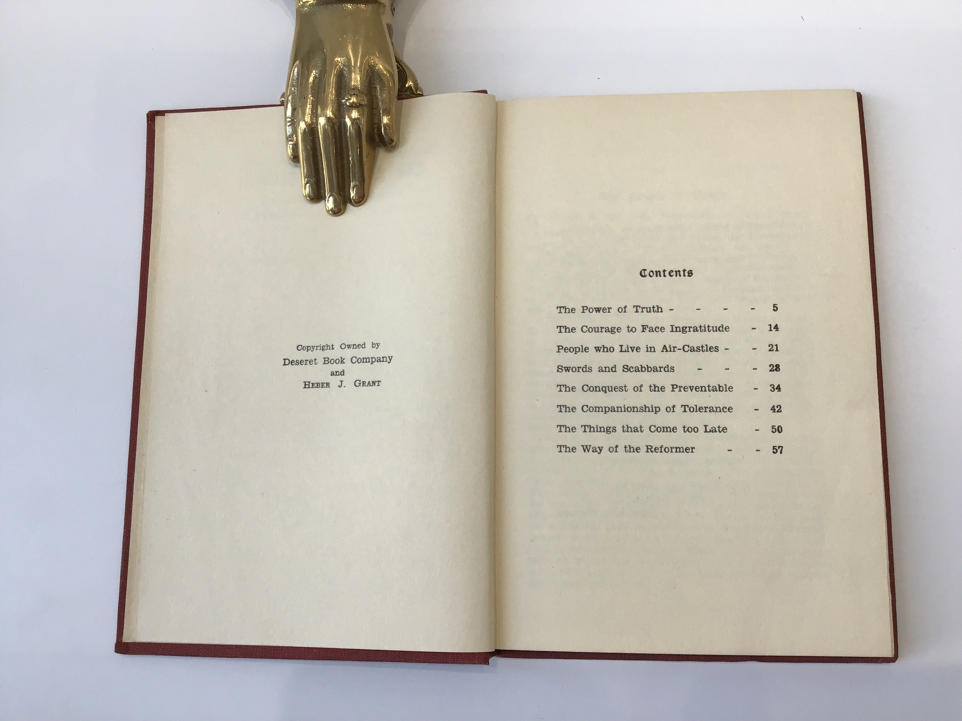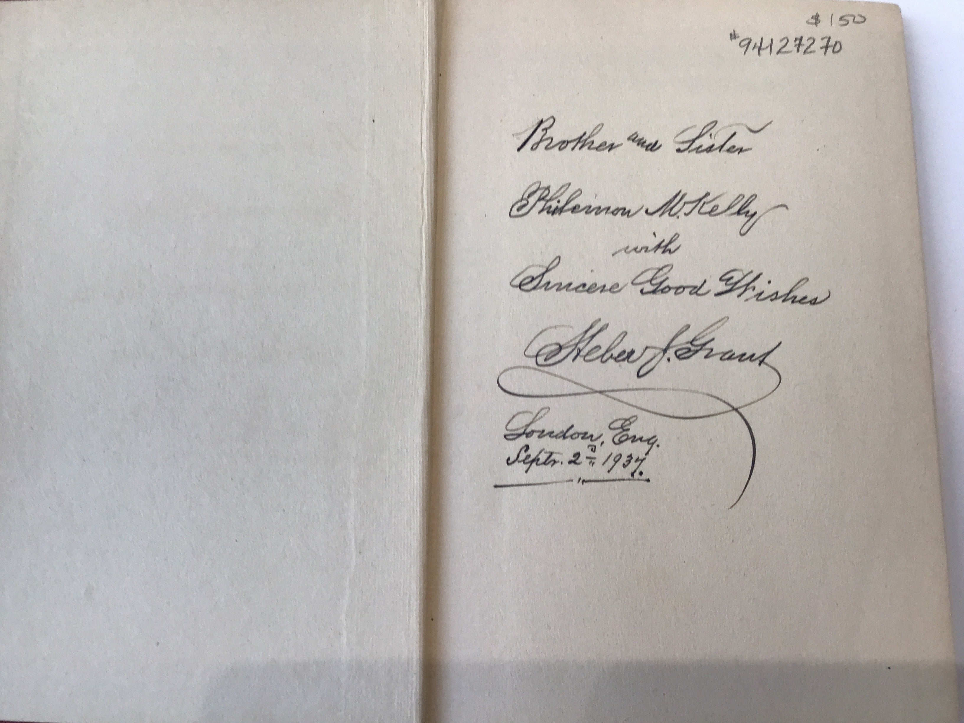Burnt orange cloth cover binding with gold tooling, inscribed the beautiful handwriting of Heber J. Grant in front cover, excellent condition