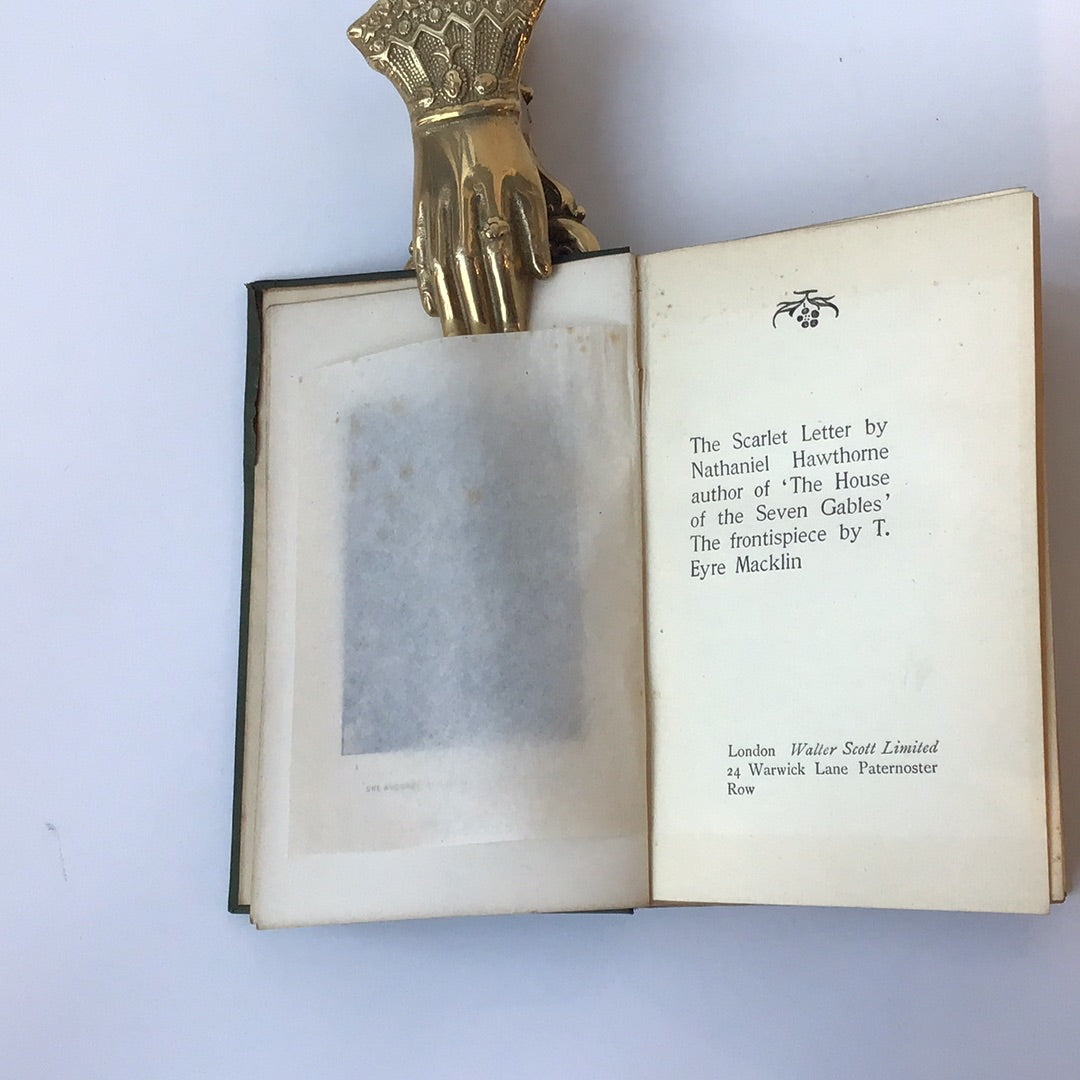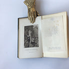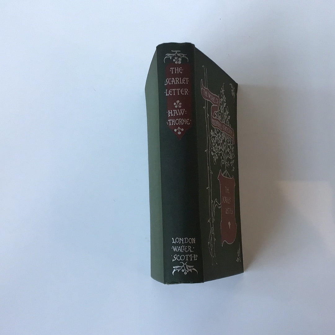 Olive Green cloth with silver embossing on front, burgundy banners with silver lettering on front and spine, gilt on top of pages