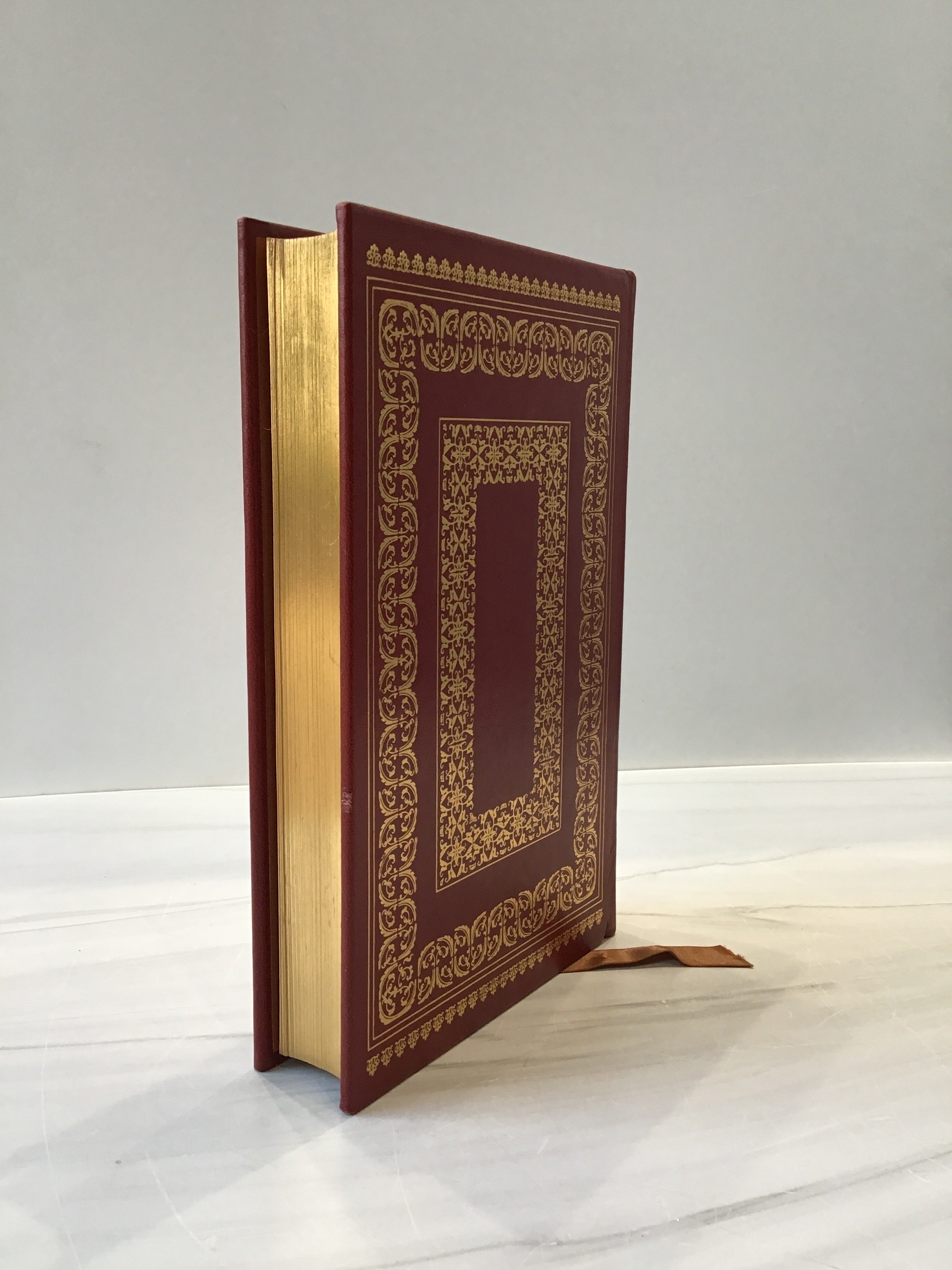 Red leather bound hard back edition with gold embossed designs on front and back cover and gold embossed lettering on the spine. Gold fore edge, brown silk bookmark, and Four raised bands. Illustrations throughout. Excellent Franklin Library Edition.