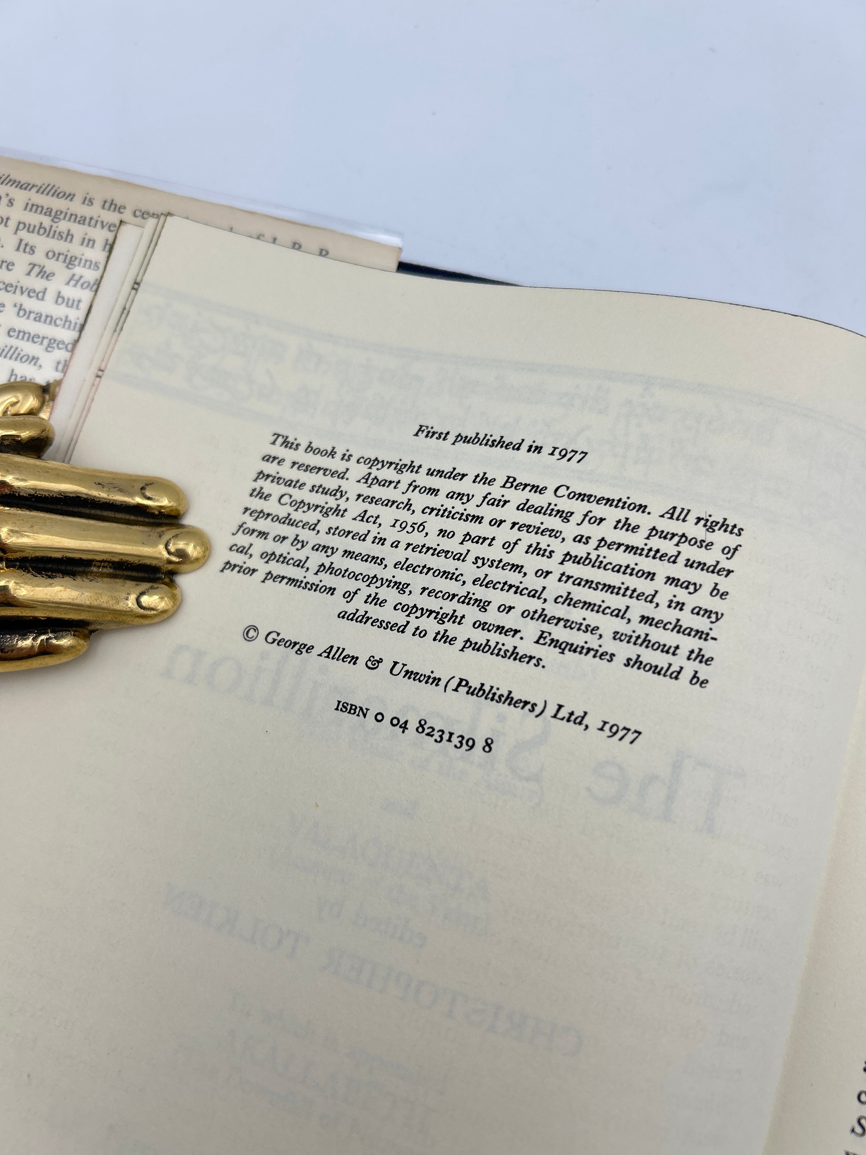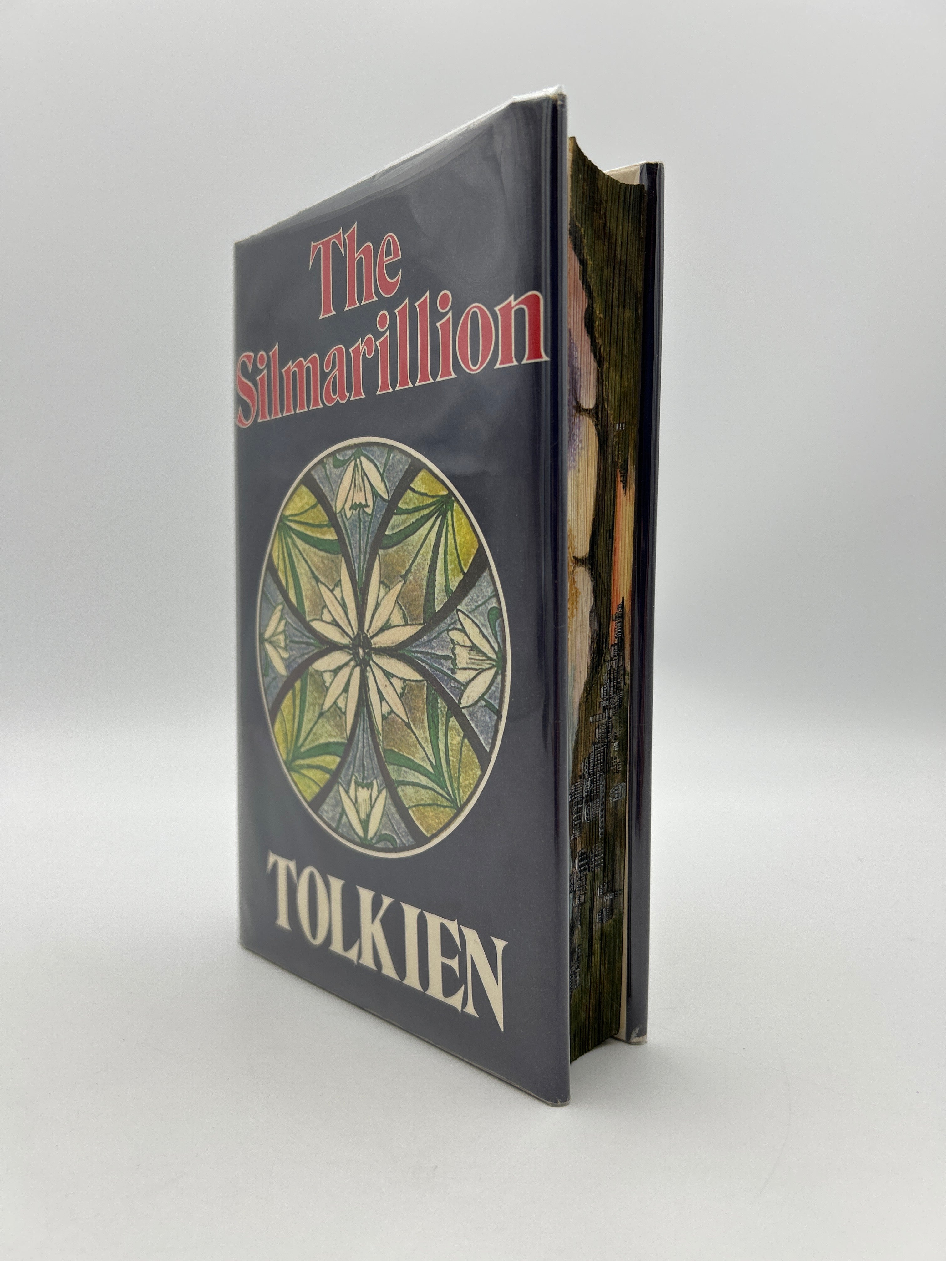 First edition The Silmarillion by J.R.R. Tolkien (1977), with original dust jacket in very good condition. Features a stunning fore-edge painting by artist Maisie Matilda, depicting Valinor. A unique collector's item for Tolkien fans.