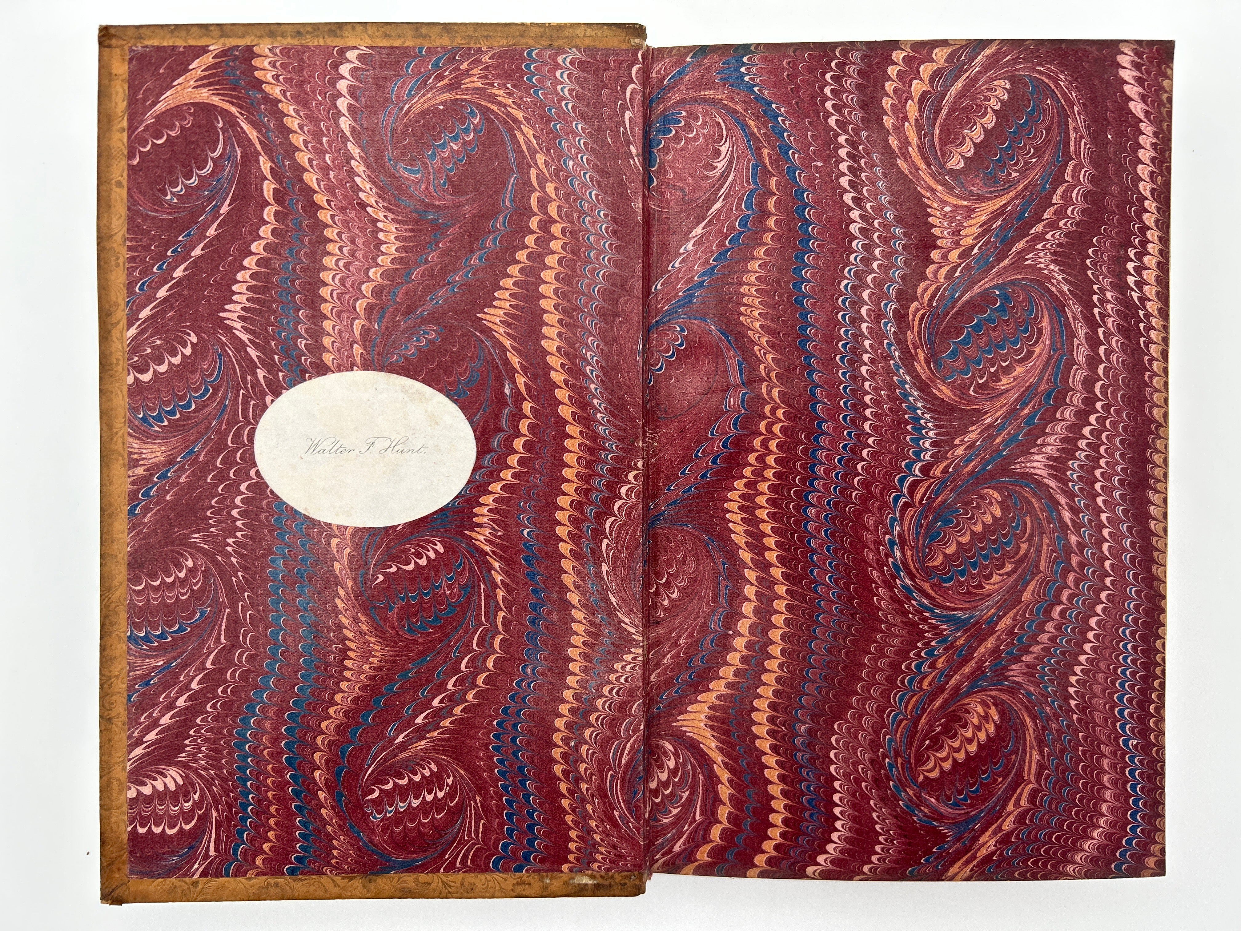 All volumes bound in tree leather with floral and vine gilt embossing framing all front and back boards. Five raised bands with gilt decorations in all compartments and gilt lettering on a red leather label in the second compartment and the gilt volume number on a red leather circle set on a green leather label in the third compartment. Embossed turn-ins with marbled endpapers and all marbled edges. Interior in excellent condition. Minimal wearing to the leather on the raised bands but other than that extremely minimal wear to the edges and extremities. Very fine condition overall.
