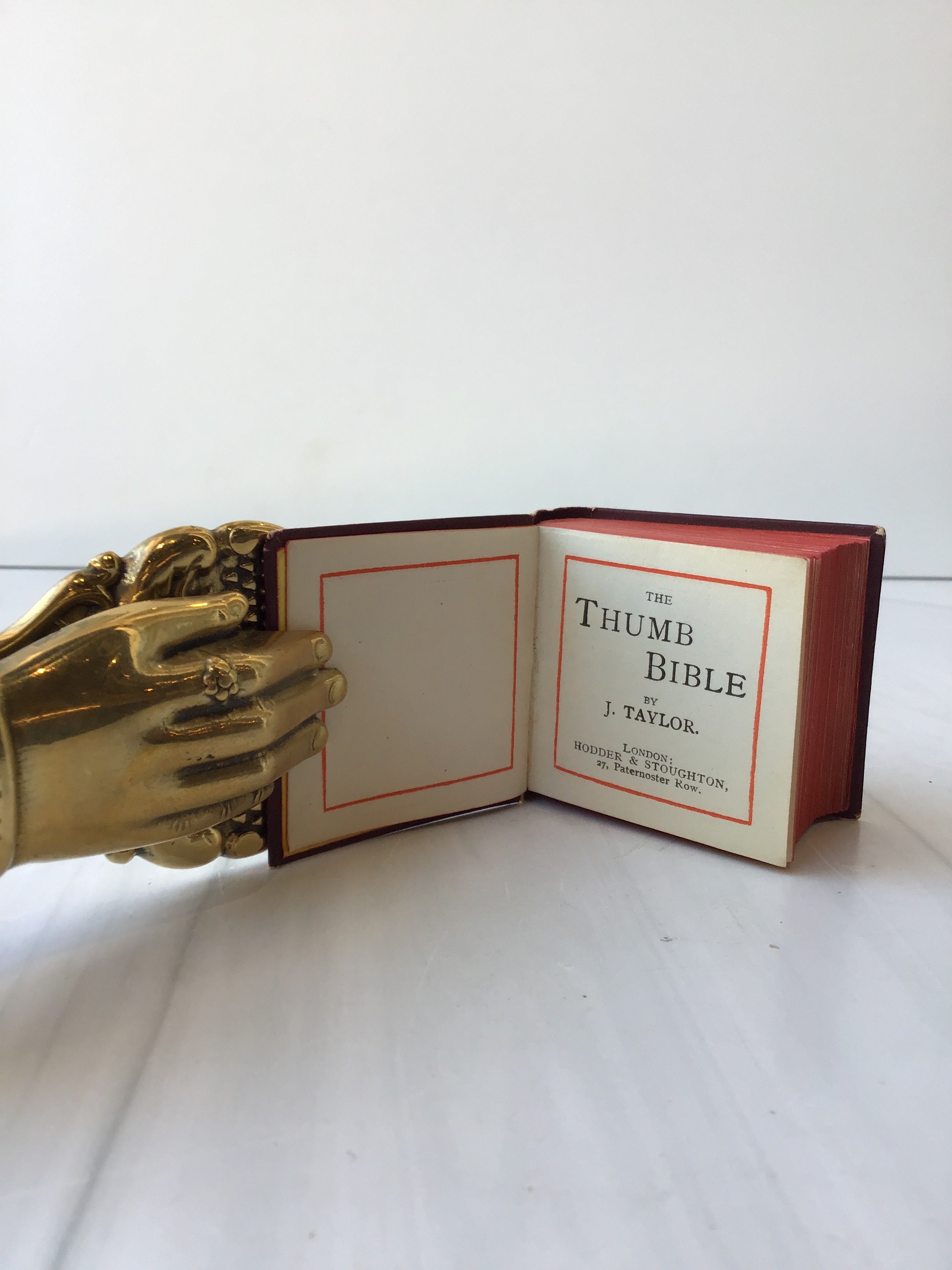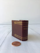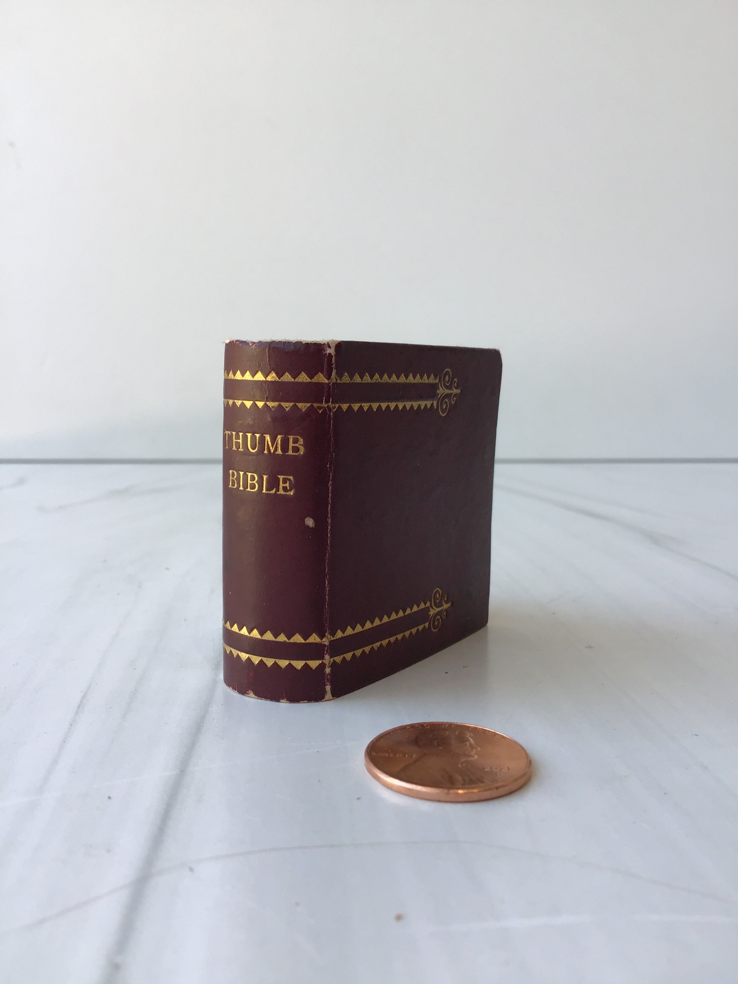 The 1909 Thumb Bible by J. Taylor is a remarkable artifact of its time, encapsulating the essence of compactness and convenience in biblical literature. Comprising the entire text of the King James Version of the Bible, this miniature edition earned its moniker due to its size, small enough to fit comfortably in one's palm or pocket. Its diminutive dimensions belie the wealth of spiritual wisdom contained within its pages, making it a cherished possession for devout individuals seeking portability without compromising on the sacred text's integrity. Testament to the ingenuity of its creator, the 1909 Thumb Bible remains a testament to the enduring appeal and adaptability of the Bible throughout history.