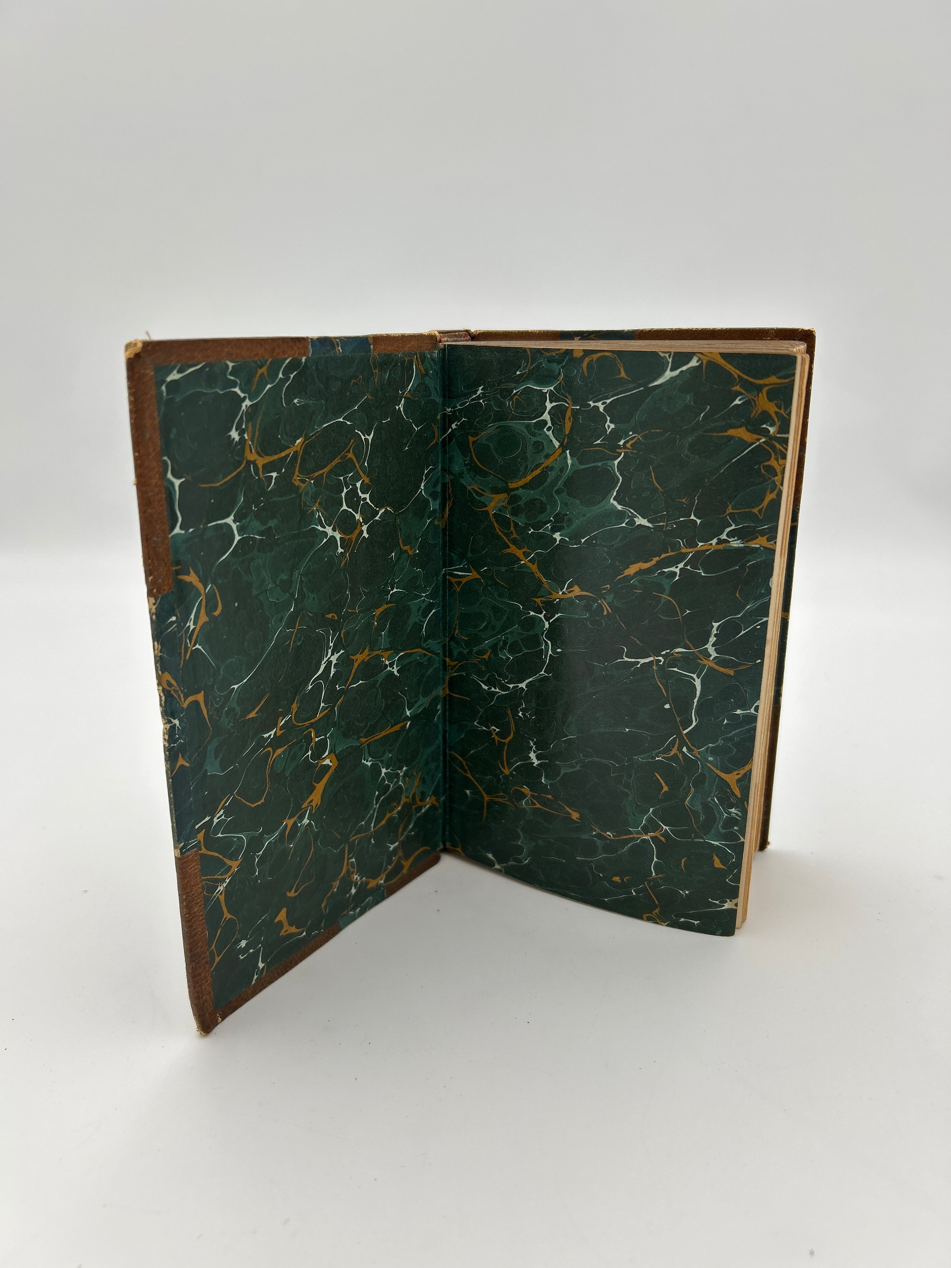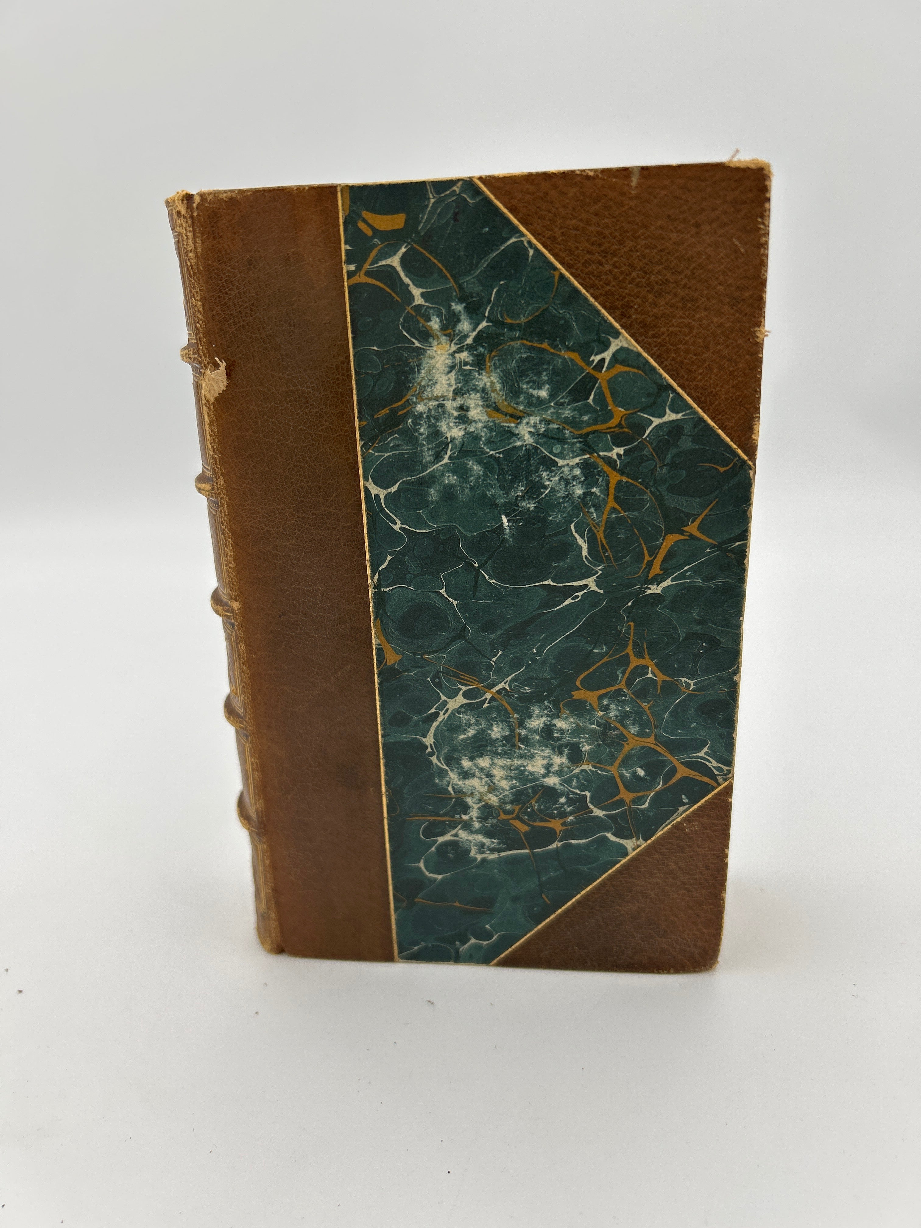 Marbled boards with three quarter brown leather, five raised bands, and gilt lettering and illustrations along the spine. Several engraved images throughout. Marbled endpapers. Bumped corners and rubbed edges. Some fading to the boards.