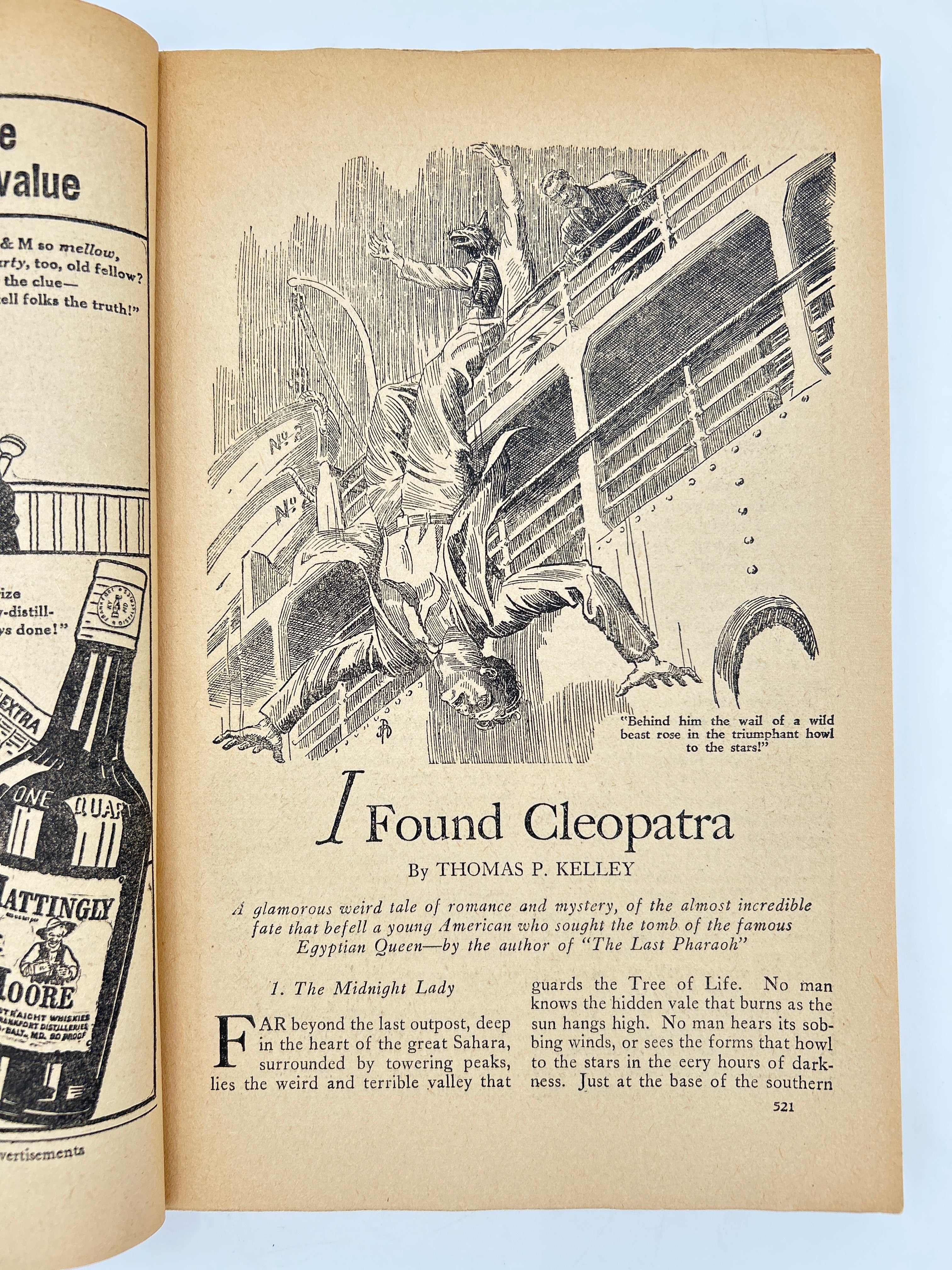 Thomas P. Kelley’s "I Found Cleopatra", serialized in Weird Tales in 1938, is a pulp adventure steeped in the era’s fascination with lost worlds and ancient civilizations. Kelley, often described as Canada’s “King of the Pulps,” was known for his sensational plots and dramatic prose. In this tale, a modern explorer stumbles upon the legendary Cleopatra, kept alive through secretive means in a hidden Egyptian enclave. The story combines exoticism, romance, and fantasy in a manner typical of Kelley’s over-the-top narratives, appealing to readers’ thirst for the bizarre and the forbidden. While often criticized for its purple prose and cultural stereotypes, the story remains a curious artifact of pulp escapism.
