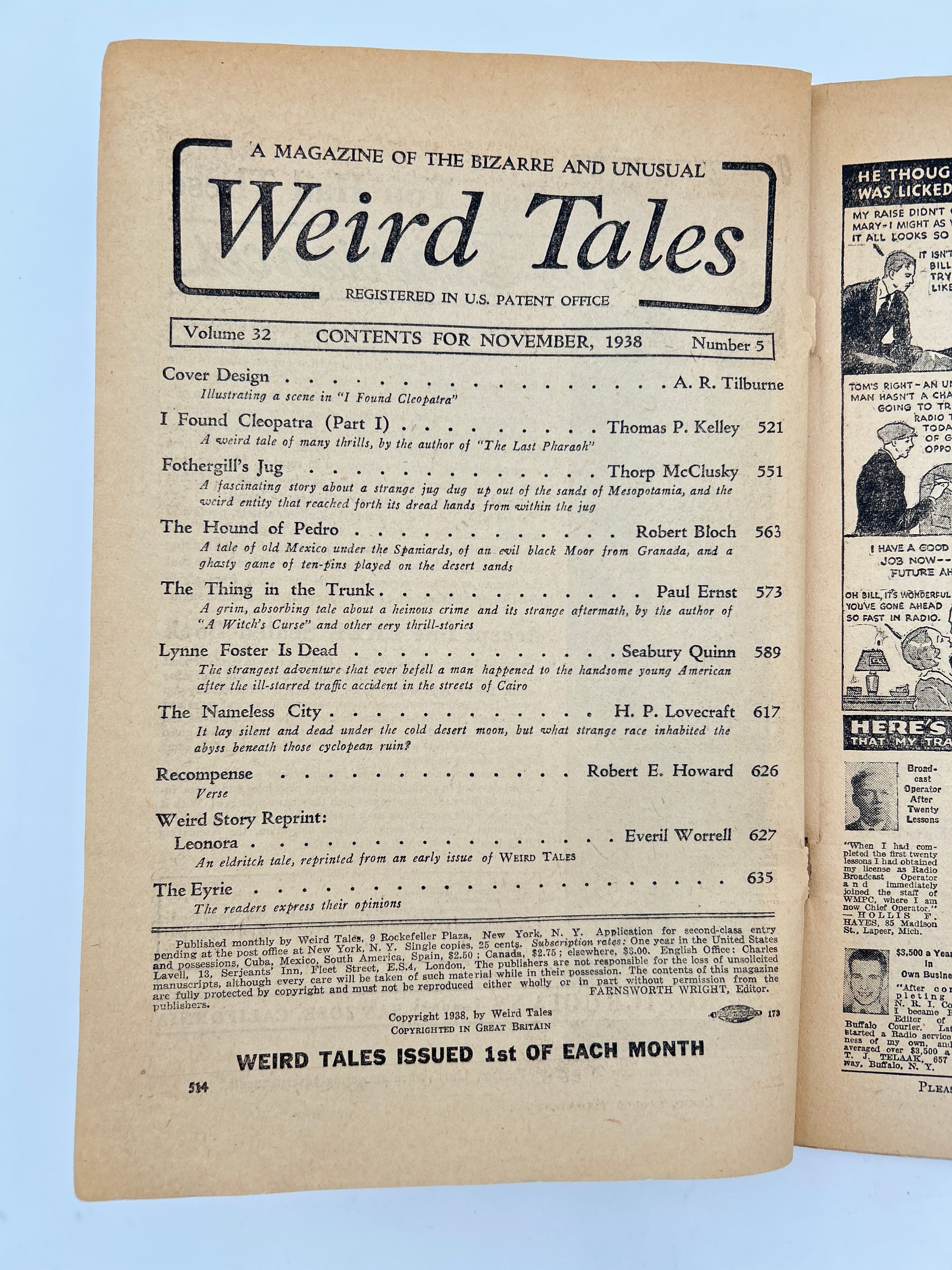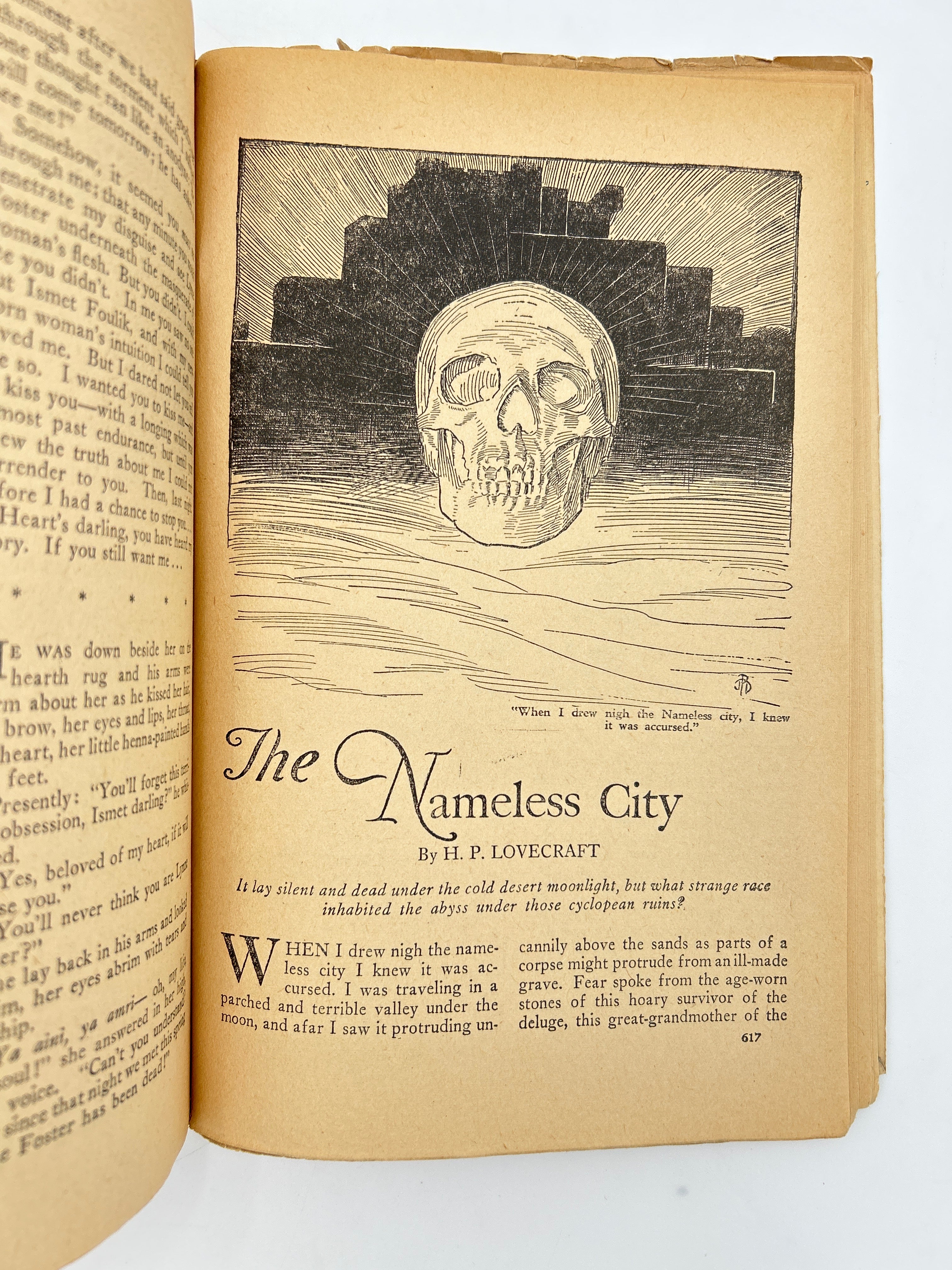 5b Various Authors including Paul Ernst, “The Thing in the Trunk”. Thomas P. Kelley, “I Found Cleopatra”. H. P. Lovecraft, “The Nameless City”. November 5, 1938.
