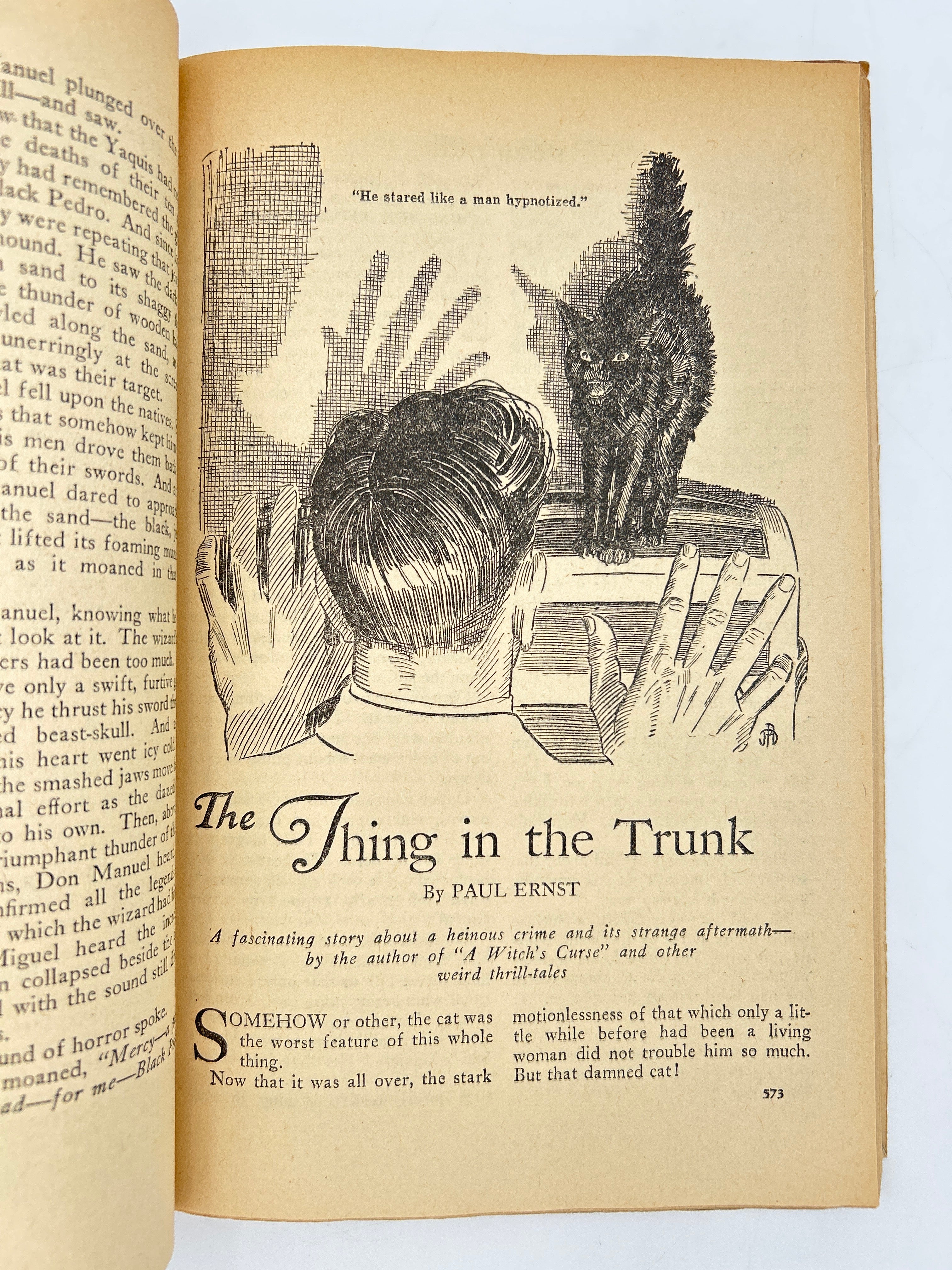 Paul Ernst’s story "The Thing in the Trunk", published in Weird Tales in 1933, reflects his talent for blending suspense, science fiction, and horror. Ernst, a prolific pulp writer, often contributed to detective and adventure magazines but stood out in Weird Tales with his knack for unsettling scenarios and tight pacing. "The Thing in the Trunk" centers around a mysterious and grotesque creature transported in a locked trunk—an eerie setup that leads to deadly consequences for the characters involved. The story is emblematic of Ernst’s style: pragmatic protagonists, inexplicable horrors, and a creeping sense of dread that escalates toward a violent climax.