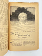 Pictorial paperback copy of weird tales. The 16th year of publication. Illustration for “I found Cleopatra” on upper cover and advertisements on back cover and several preliminary pages. Illustrations with few stories. Fully intact. Chipping to upper extremities. And fading to spine. Fine condition overall.