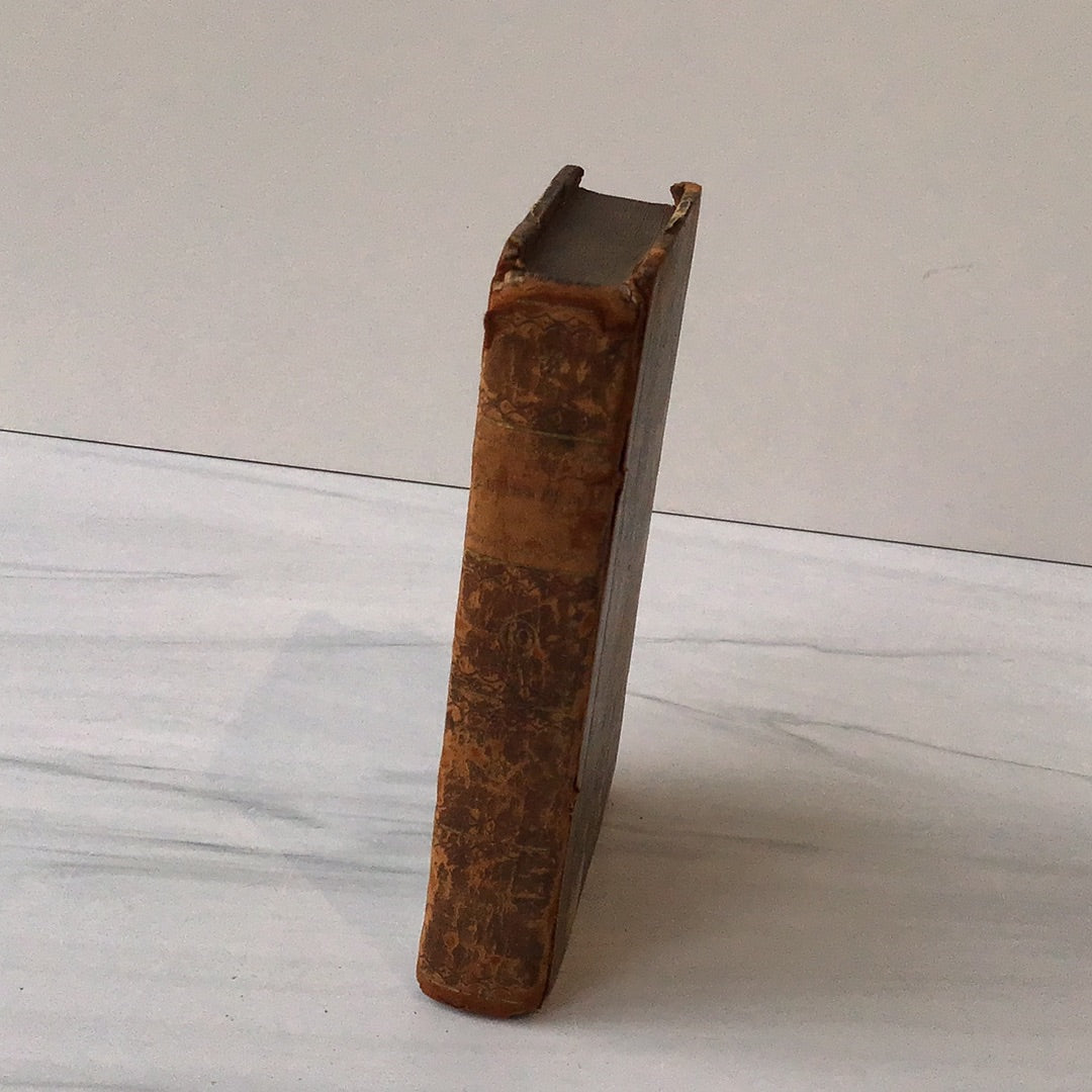 Three classic tragedies bound in brown leather and marble , pocket size, foxing and loose front page appropriate to age