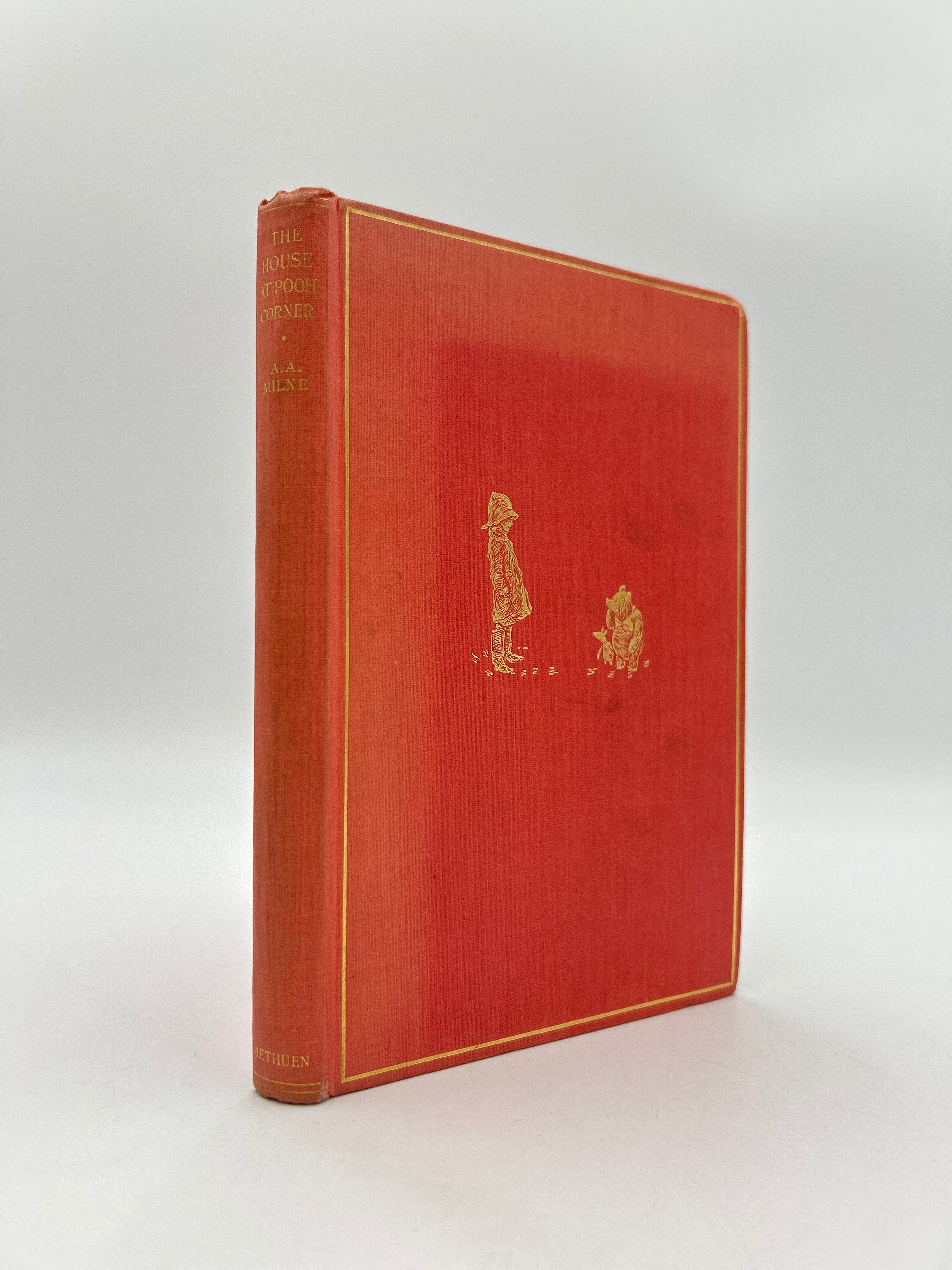 A. A. Milne, originally a playwright and humorist, turned to writing for children after the birth of his son, Christopher Robin Milne, who inspired the beloved characters and settings of the Pooh stories. The real Christopher’s stuffed animals became the models for Pooh, Piglet, Eeyore, Tigger, and the rest. Milne’s words were brought vividly to life by illustrator E. H. Shepard, whose expressive pen-and-ink drawings helped define the gentle, English countryside tone of the books. First editions of the Pooh series, published by Methuen & Co. in the 1920s, are treasured for their original illustrations, high-quality bindings, and their role in shaping one of the most enduring legacies in children's literature. The Hundred Acre Wood itself was inspired by Ashdown Forest in East Sussex, a real place Milne and his son loved to explore.