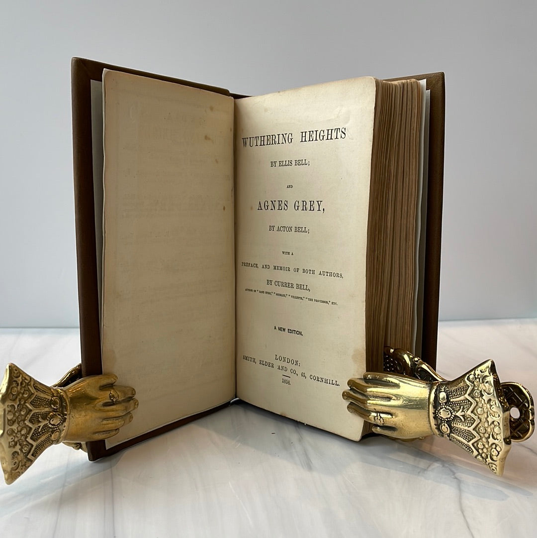 Rebound brown leather cover with embossing on front and binding, gold lettering on spine, black title label on spine with green 'Agnes Grey' and 1858 gold leaved on spine, very fine condition.